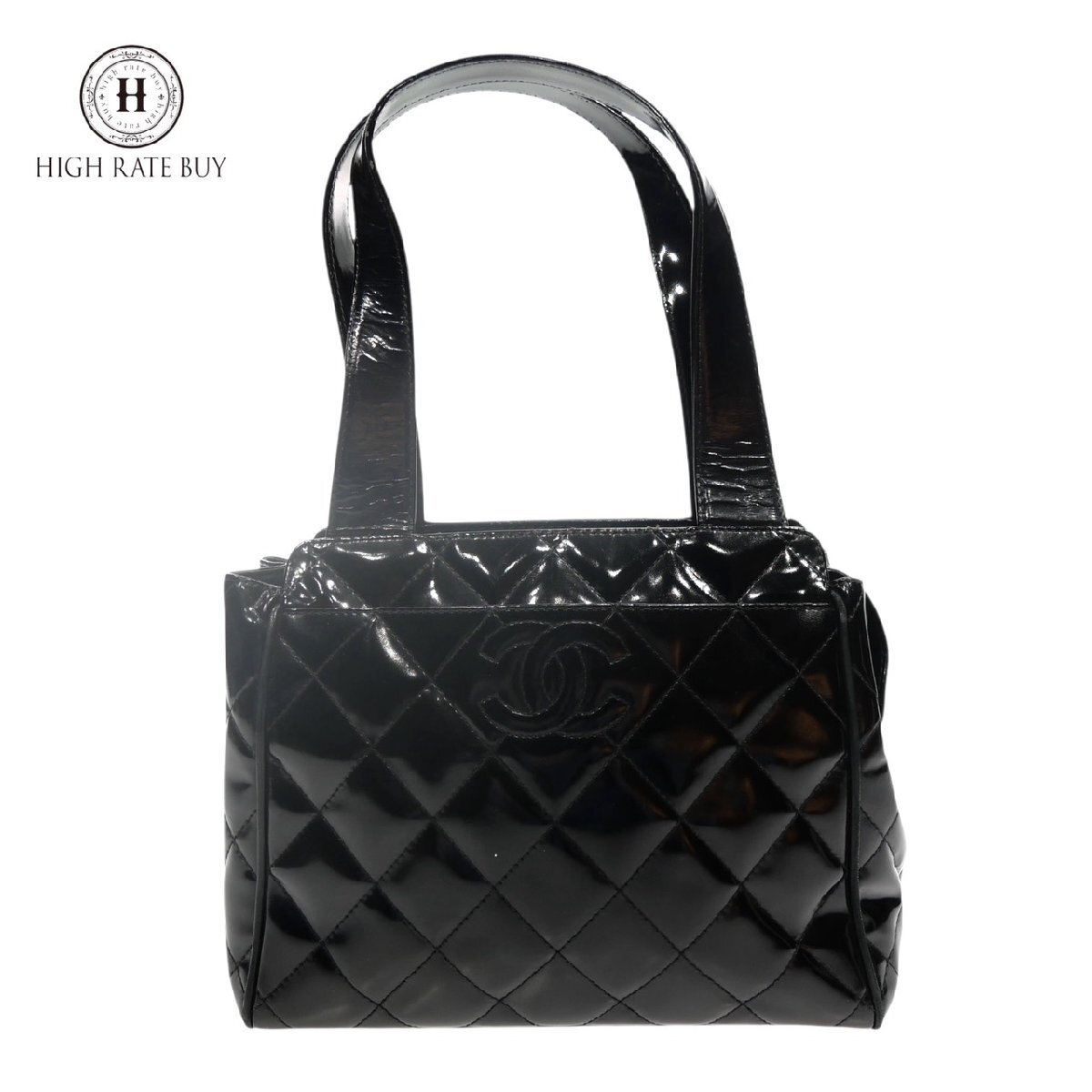 1円スタート CHANEL シャネル マトラッセ ココマーク トートバッグ シルバー金具 パテントレザー エナメル ハンドバッグ ブラック 黒