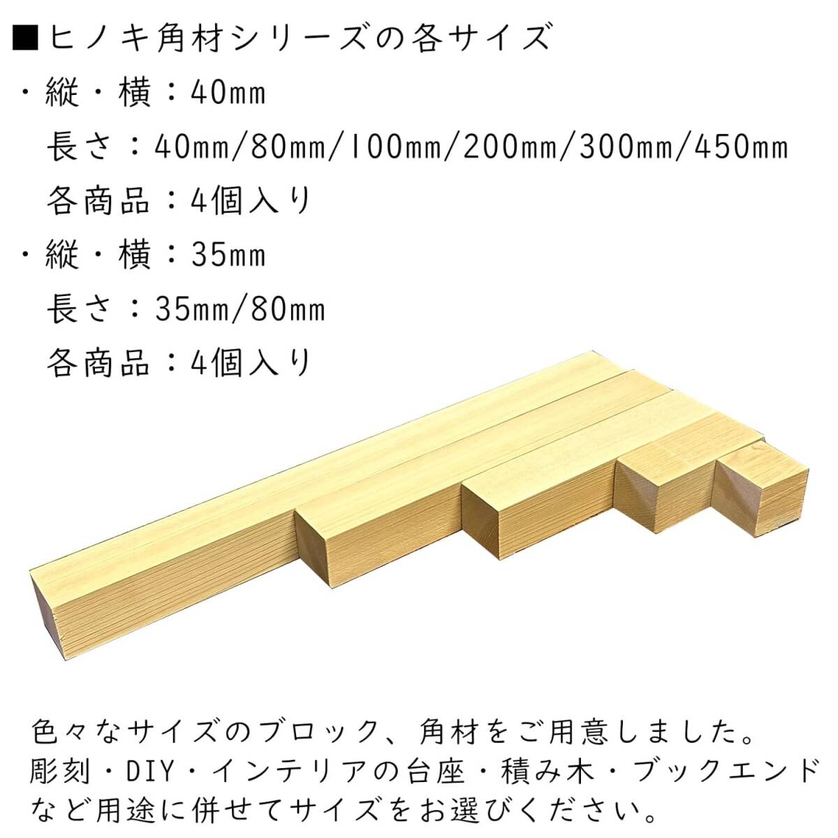 木 木材 角材 40mm ブロック ひのき 桧 ひのき角材 端材 国産 節なし DIY diy 彫刻 木角材 檜角材 (4, 80mm)