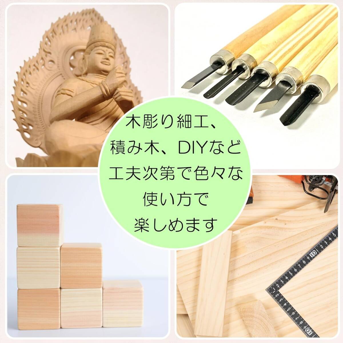 • ひのき角材 彫刻、インテリアの土台、積み木、DIY部材など加工してもそのままでも様々な用途に使用できます。