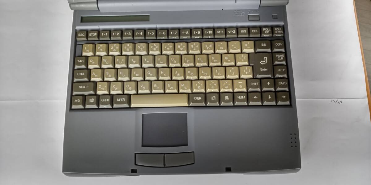 | 起動確認できましたが、液晶部に液晶焼けやキーボードの黄ばみあり、 |