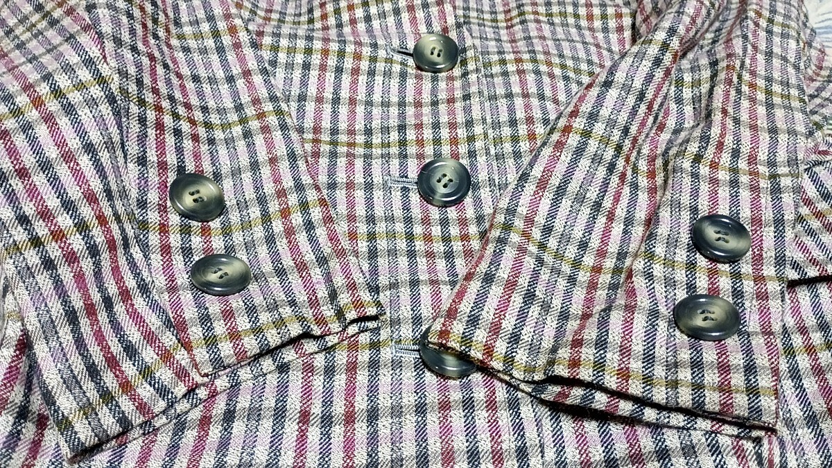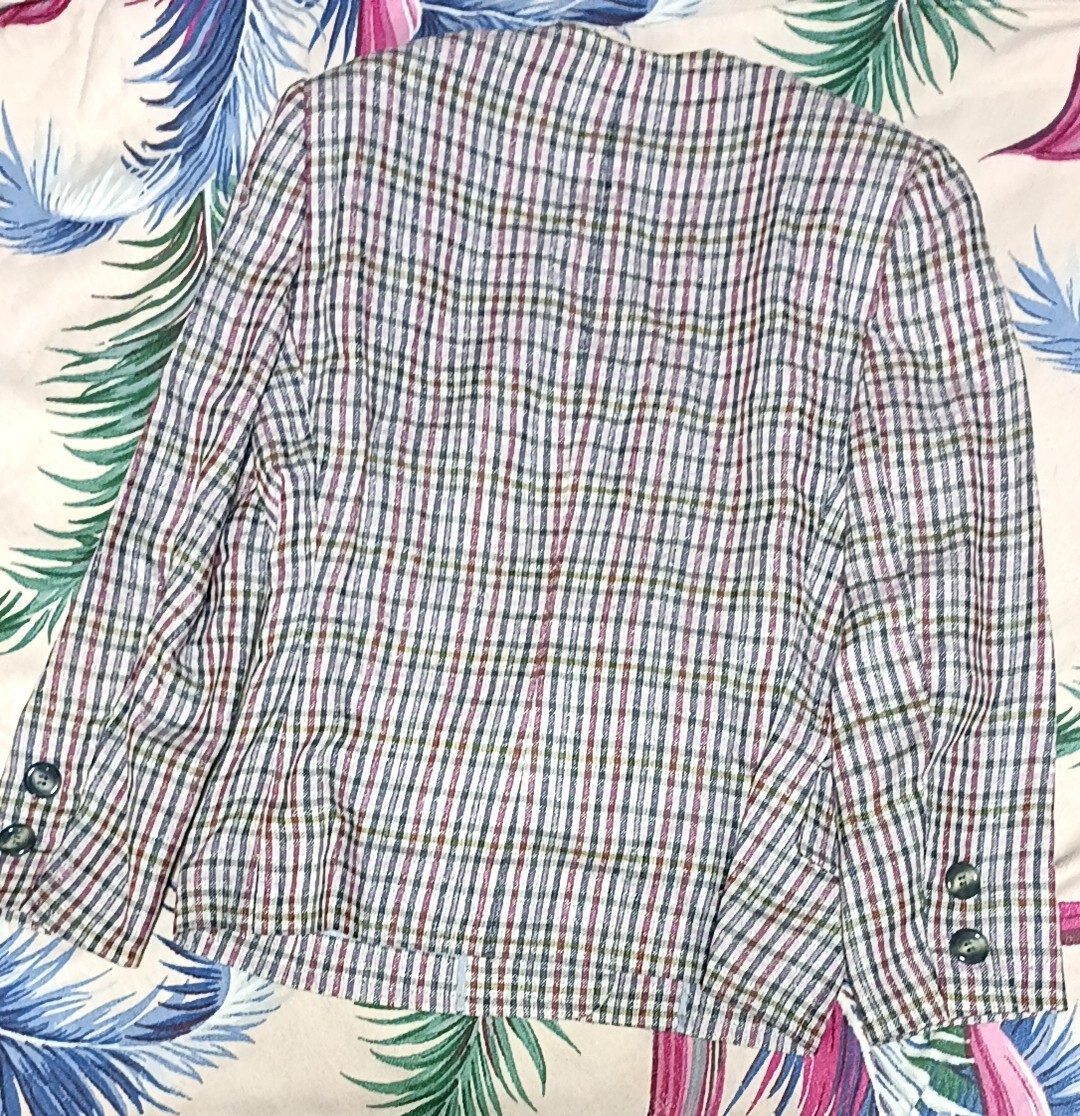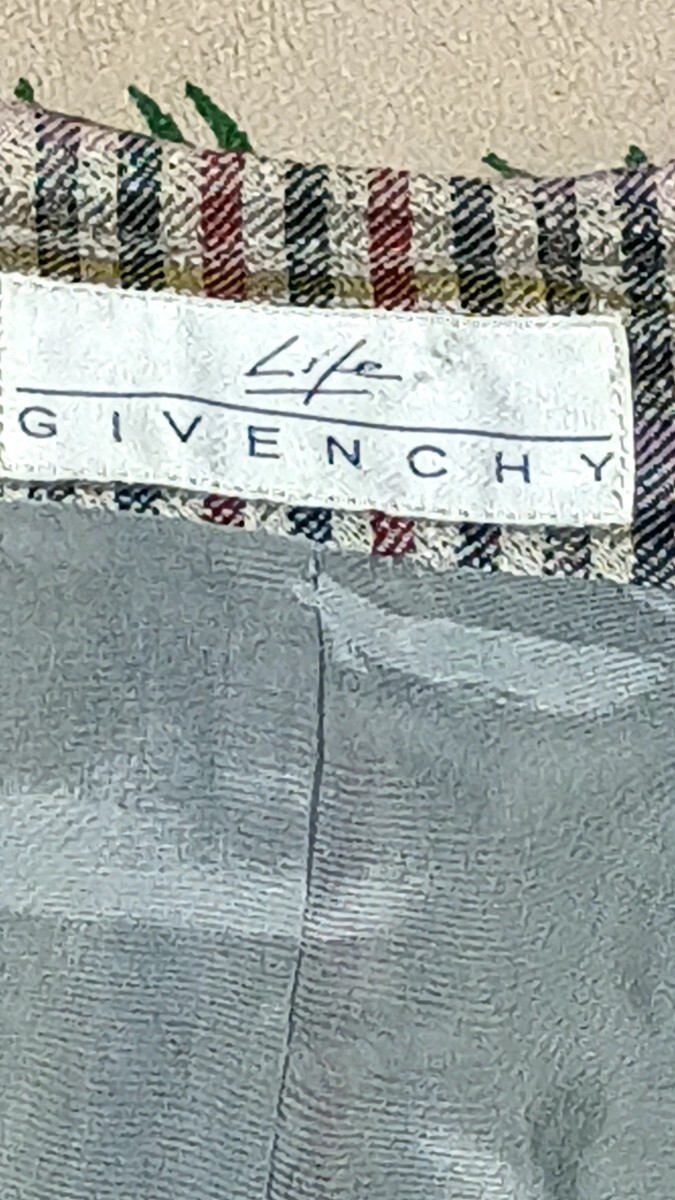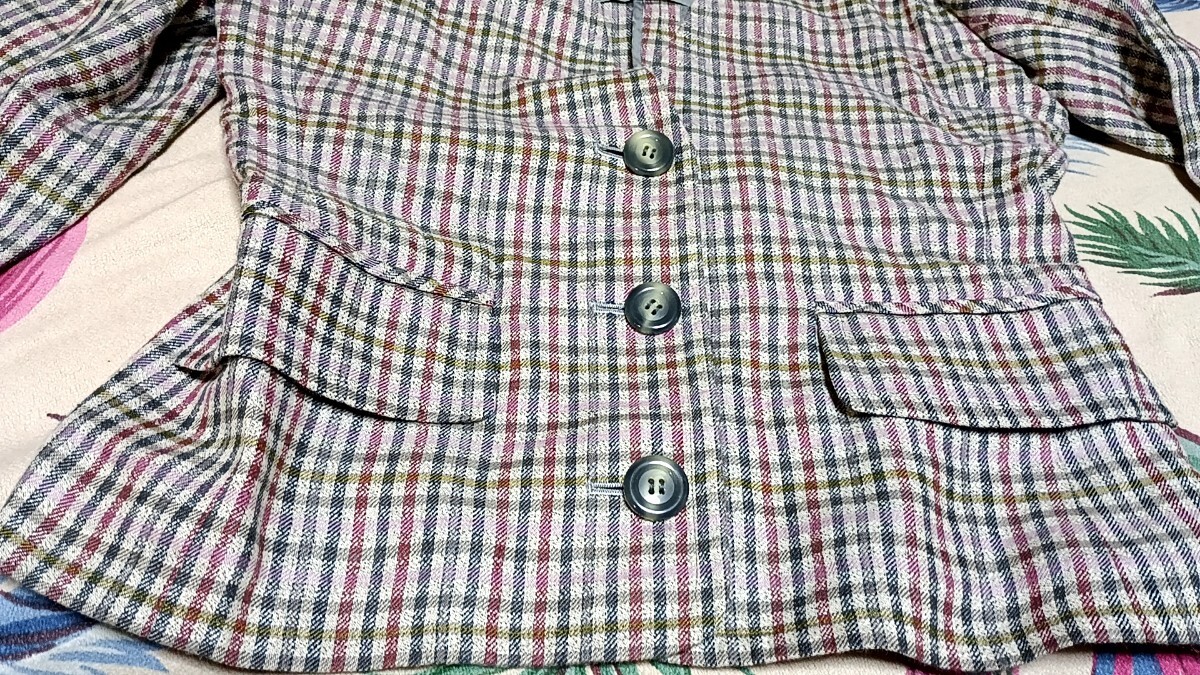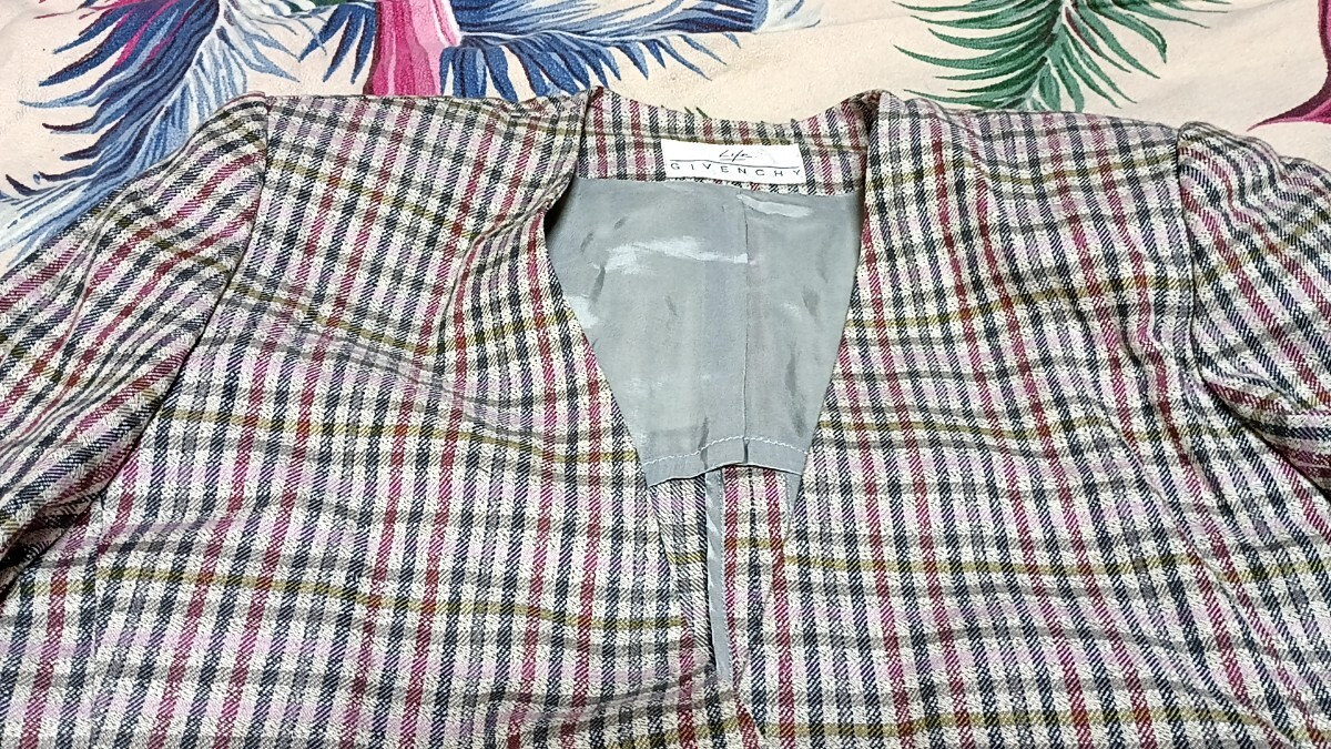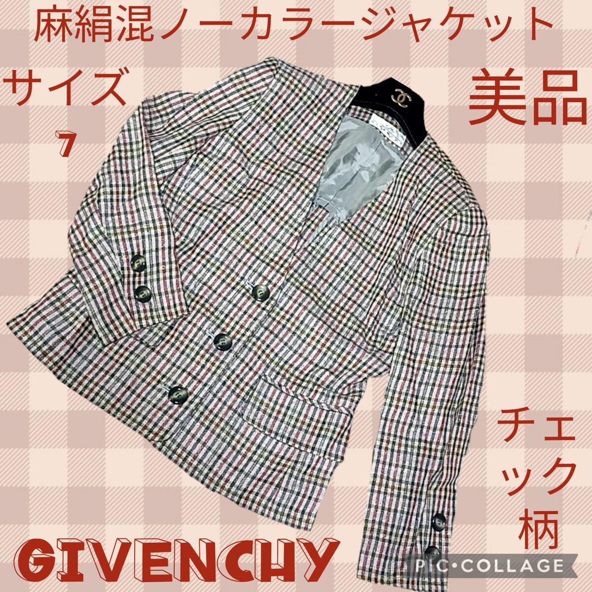 ジバンシィの薄手リネンシルク混ノーカラーチェック柄ジャケットになります。