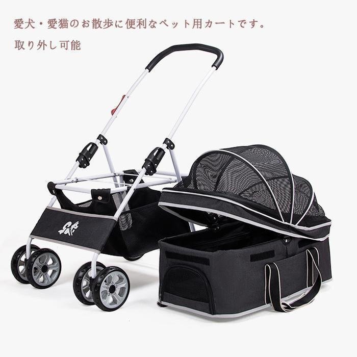 ペットカート 折りたたみ 取り外し可能 小さく畳める 犬 猫 多頭 ペットキャリー カート 25kgまで 中型犬 お散歩 お出かけ shw0025.gy