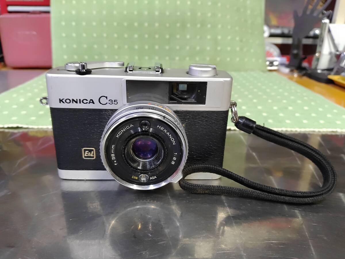当時物!コニカ KONICA「C35/E&L」フィルムカメラ/レンズHEXANON38mm 1:2.8(中古)シャッター押せましたアンティーク レトロマニア