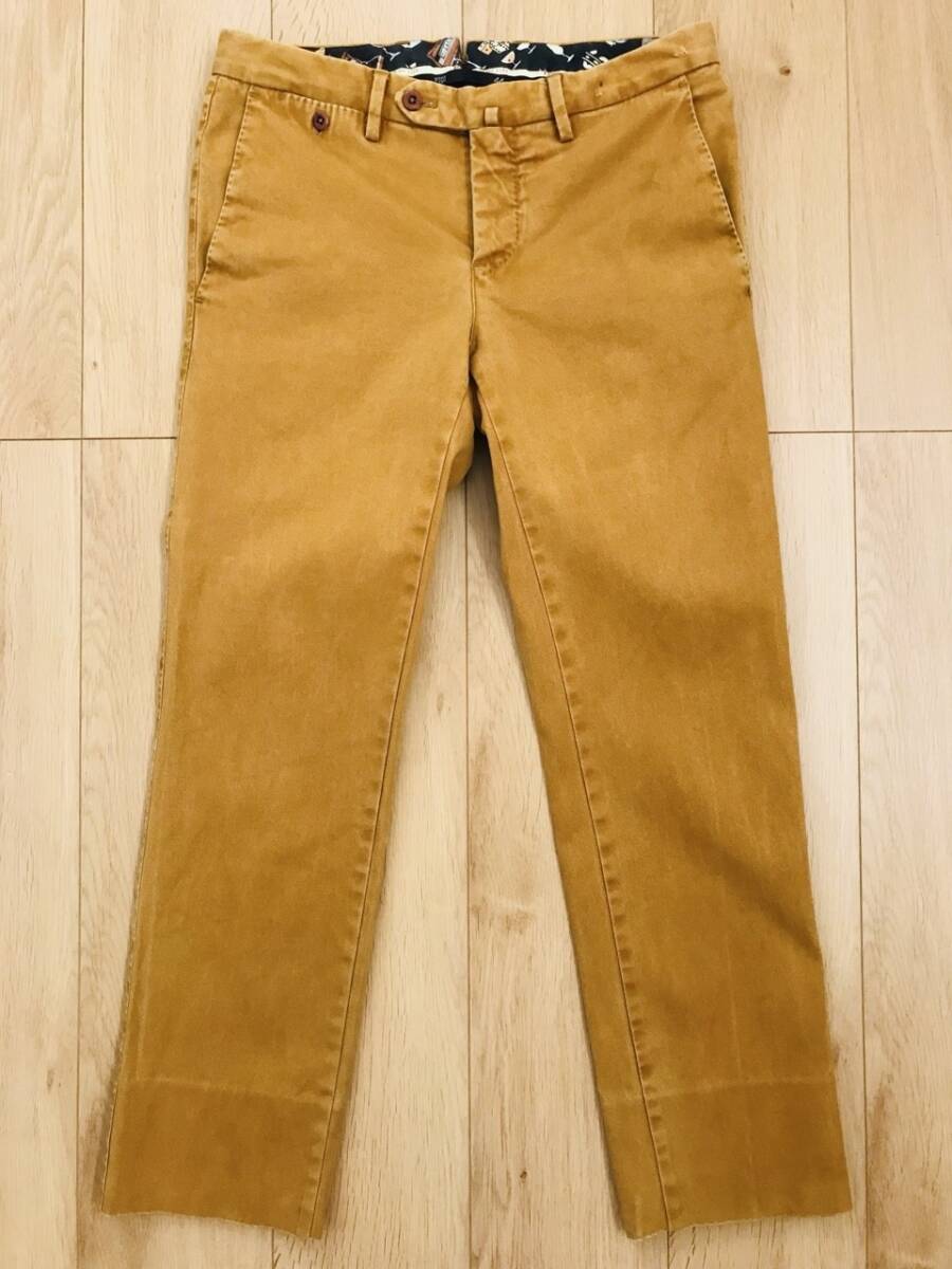 | サイズ |    表記44(実寸:ウエスト:約78cm もも幅:約26cm 裾幅:約18cm 股上:約22cm 股下:約70cm)|    色   |      ブラウン   |     素材   |      綿98% ポリウレタン2%   |     コンディション   |      7     |   |
