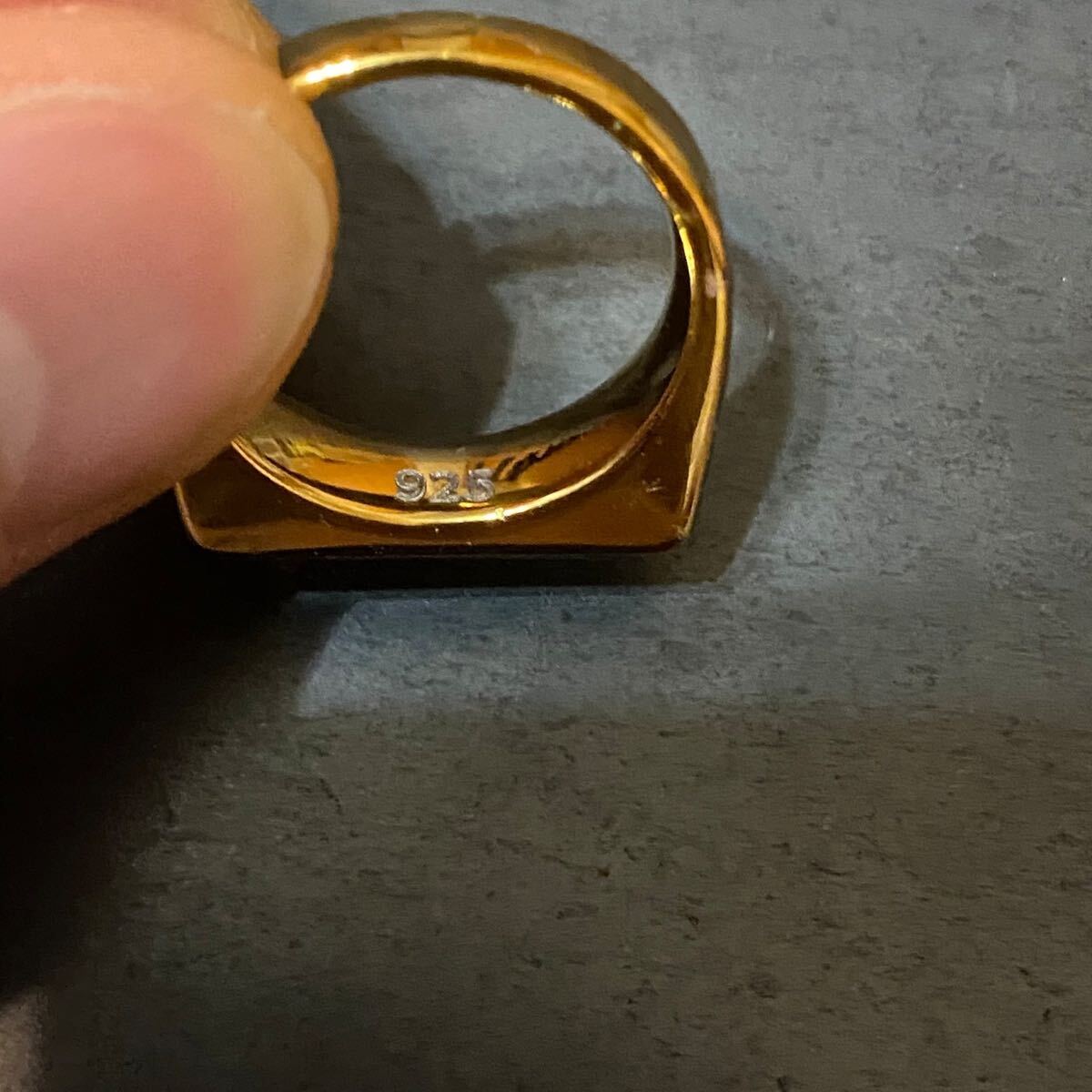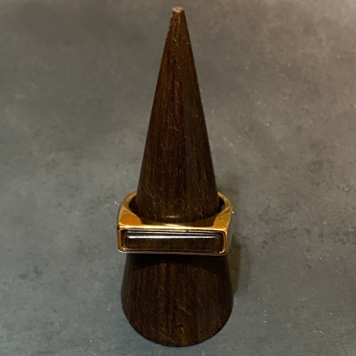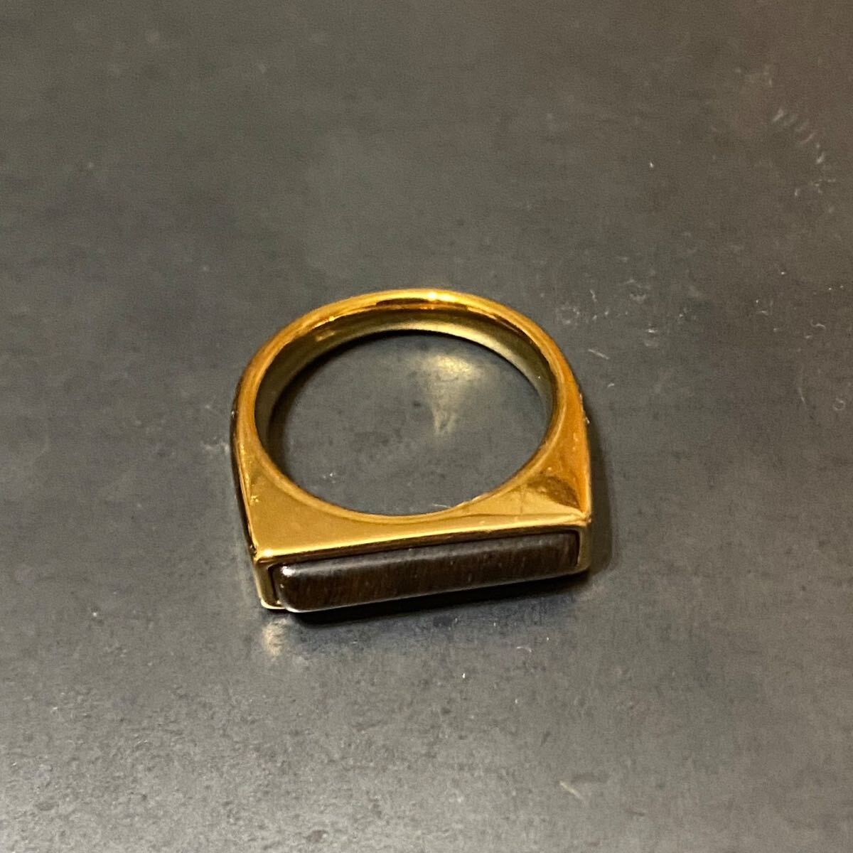 海外で買い付けたタイガーアイモチーフ・ロングシンデザインのシルバーリングです。