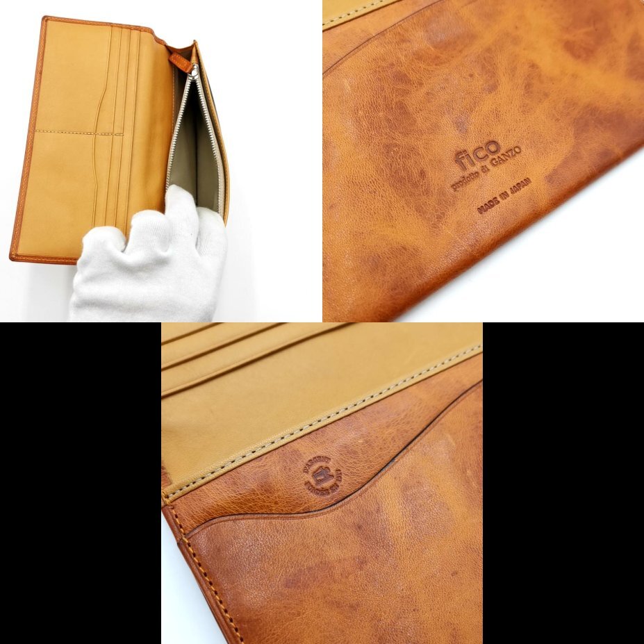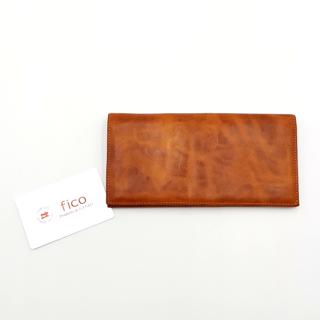 ・送料無料 超美品 フィーコ fico 長財布 財布 二つ折り 0709 01036-19A 0058427-52 WF IC レザー 本革 キップスキン 日本製 茶 ブラウン系 メンズ