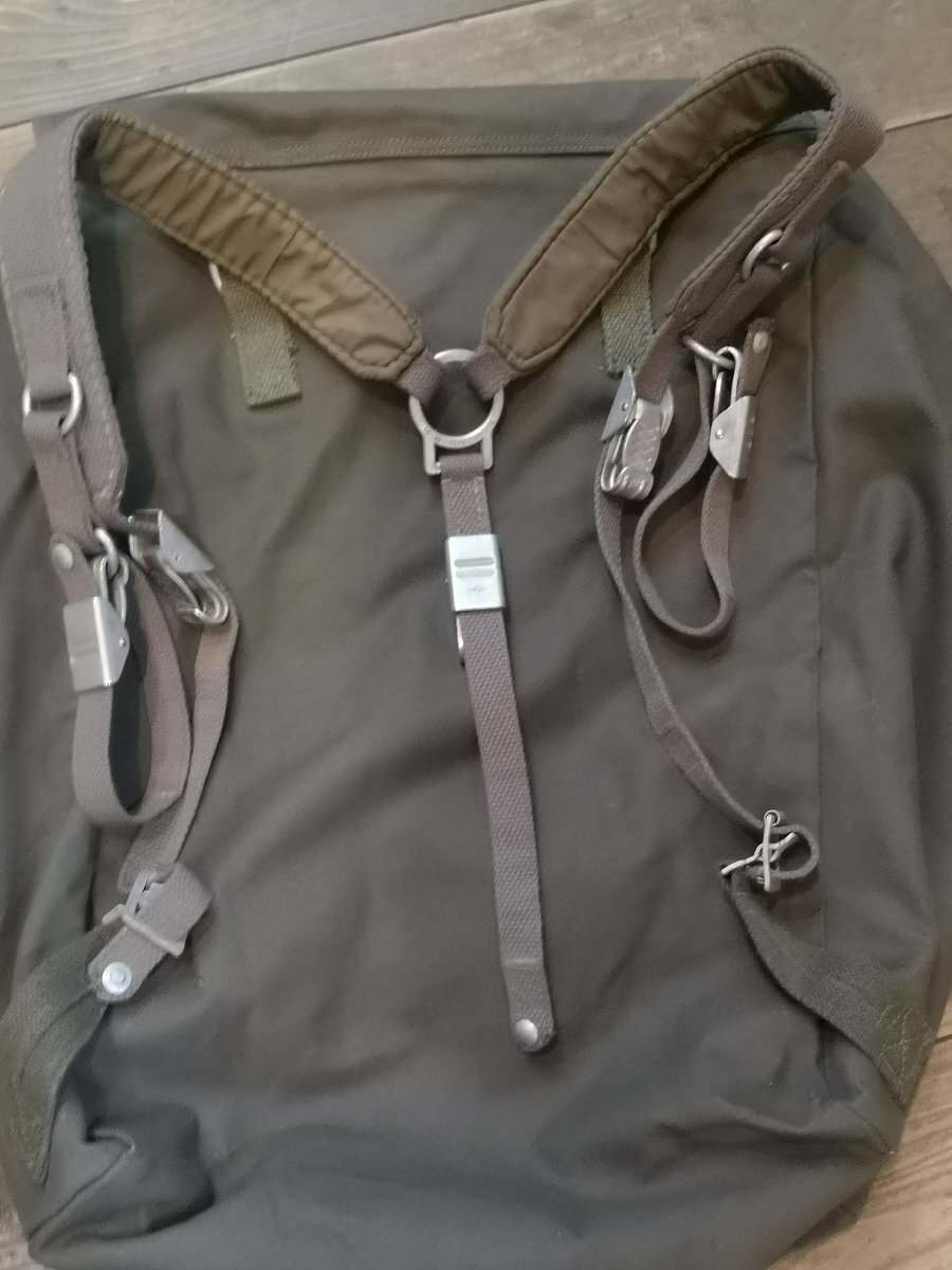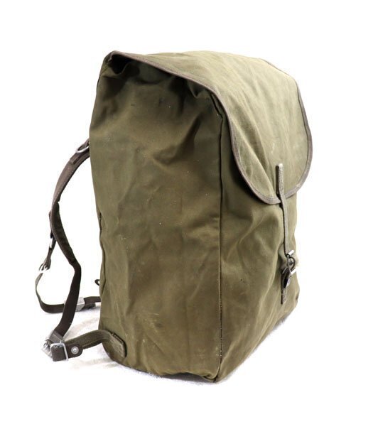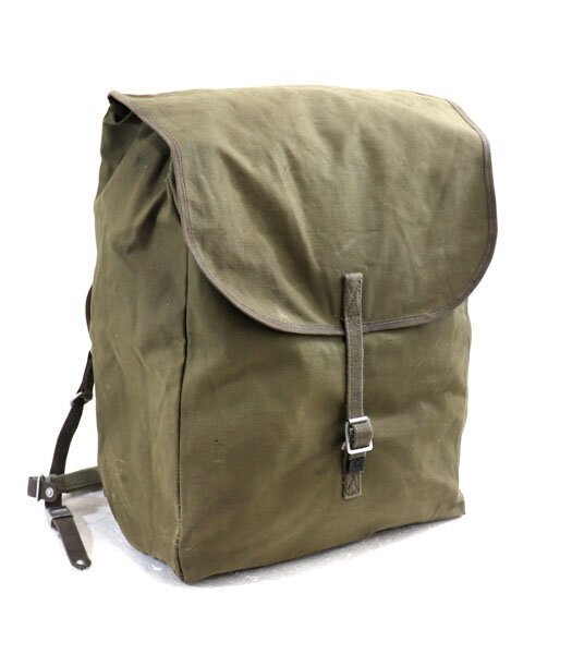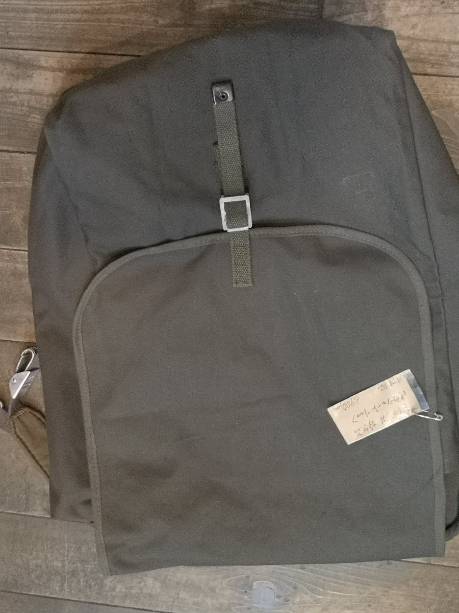 1.2枚目の写真は流用です。 ドイツ軍コットンキャンバス素材のリュックです。留め具が1つにサイドポケットなどが無く非常にシンプルな作りですが、かえって洗礼された印象があります。マチ幅も十分にあるので、旅行やレジャーにもお勧めです。 サイズ:H45cm × W37cm × マチ22cm 素材:コットン 状態:デッドストック 沖縄離島を除く全国元払い500円にてお送りいたします。落札価格にプラスでお願いします。 リュック