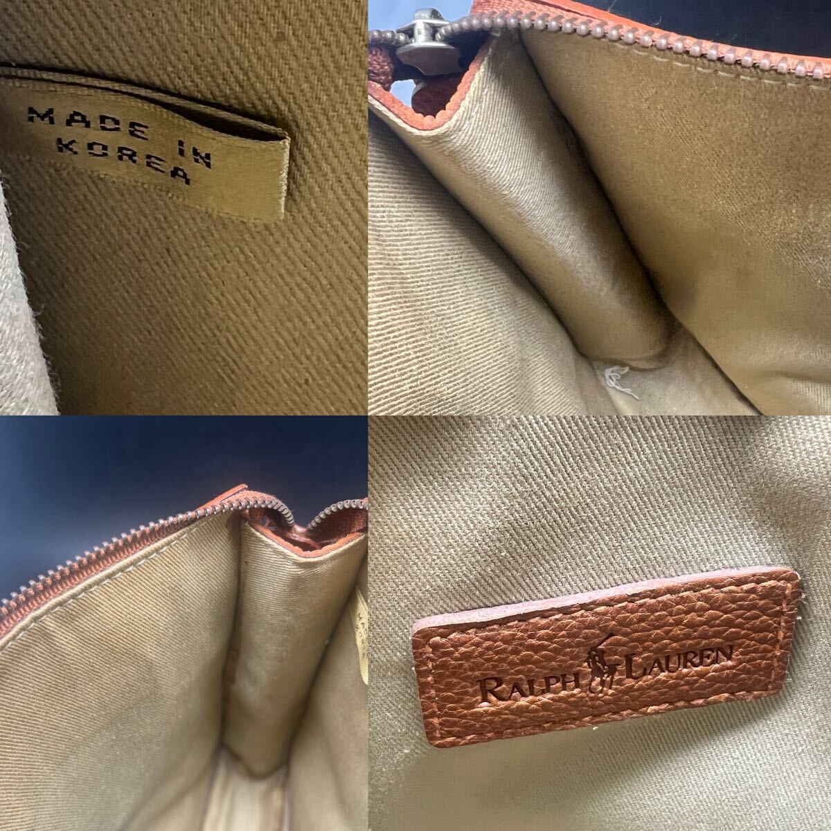 【訳あり!1000円スタート】ポロラルフローレン セカンドバッグ キャメル ブランド RALPH LAUREN 底面内布はがれ有(画像6枚目)24491