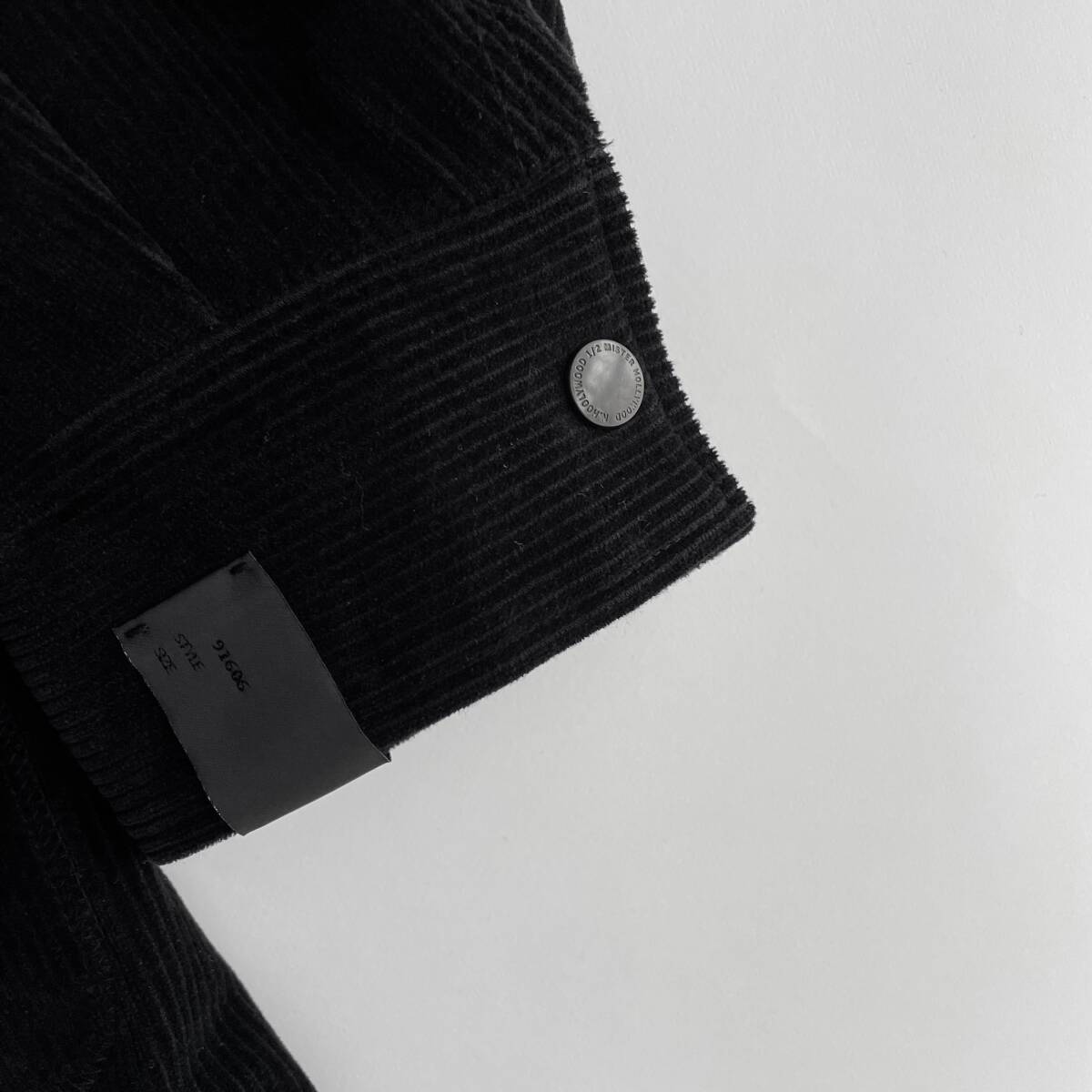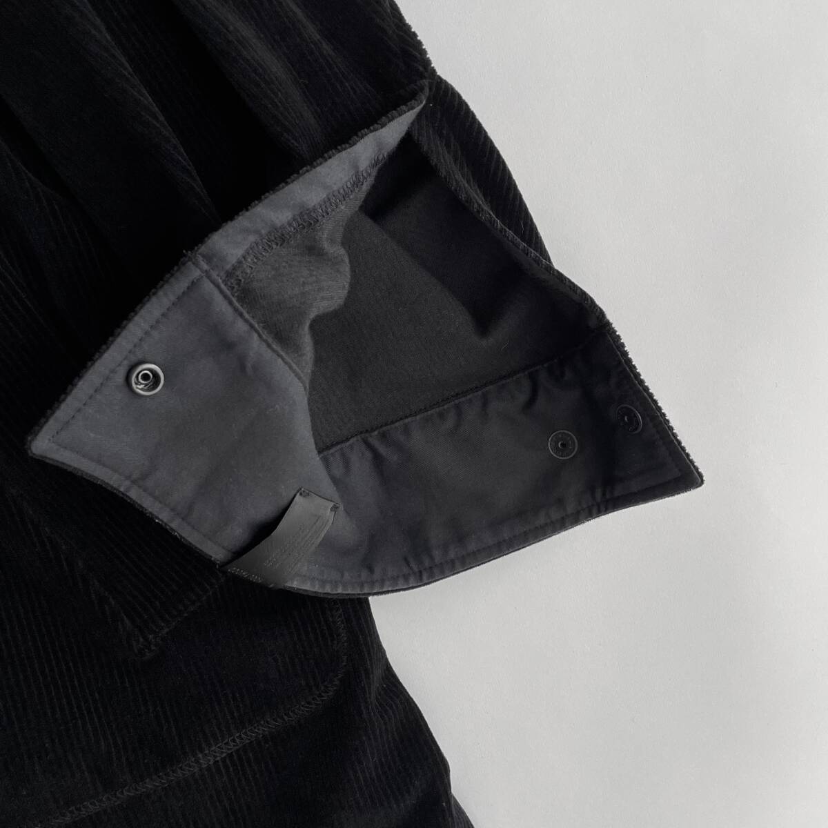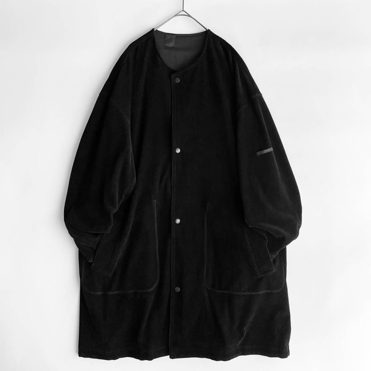 ボディとスリーブにたっぷりとゆとりを持たせたルーズでワイドなシルエットが特徴のノーカラーシャツコート。インナーに厚手のアイテムを気込めるので秋冬春の3シーズンで活用できます。コーデュロイの生地には艶感と滑らかさがあり、まるでベルベットのような上質な質感が魅力です。加えてとても肌触りが良く、さらにストレッチも効いているため着心地も良いです。