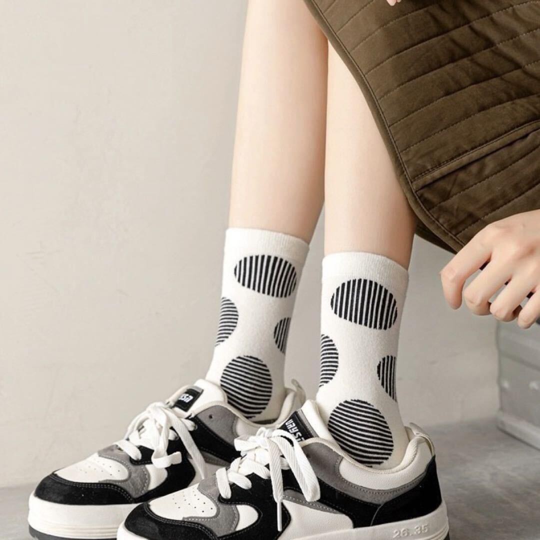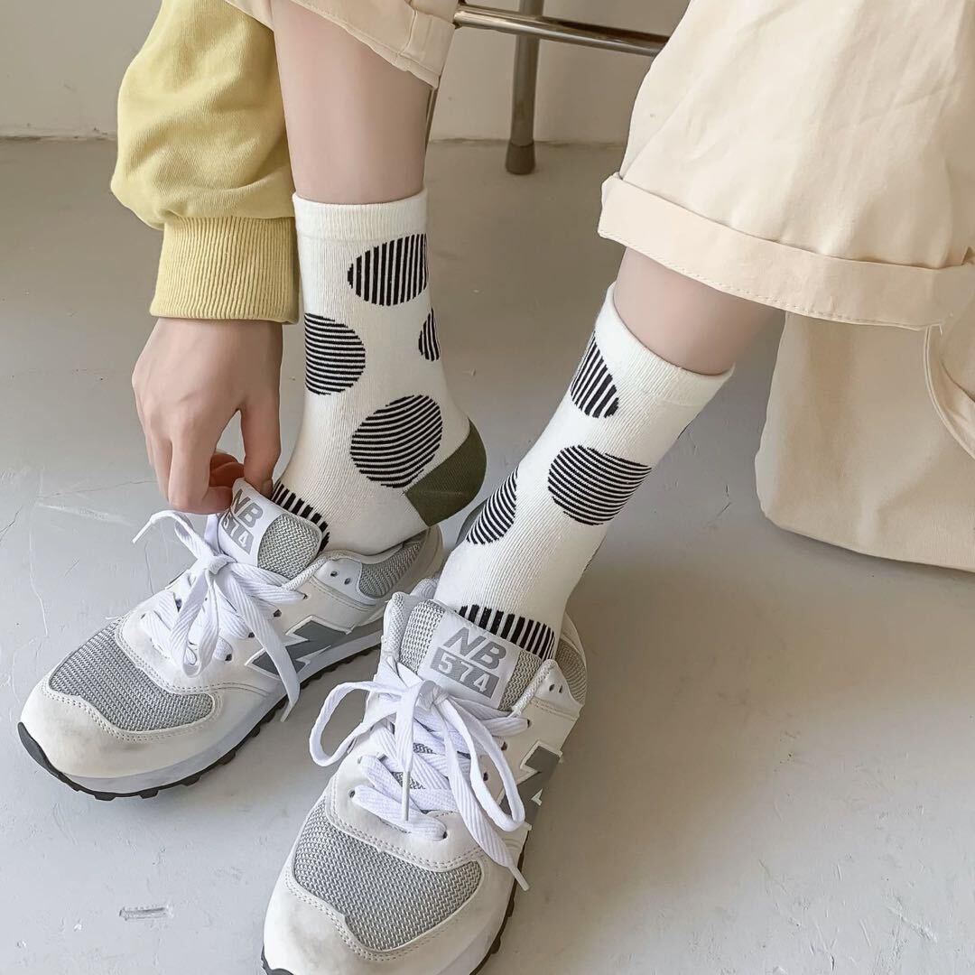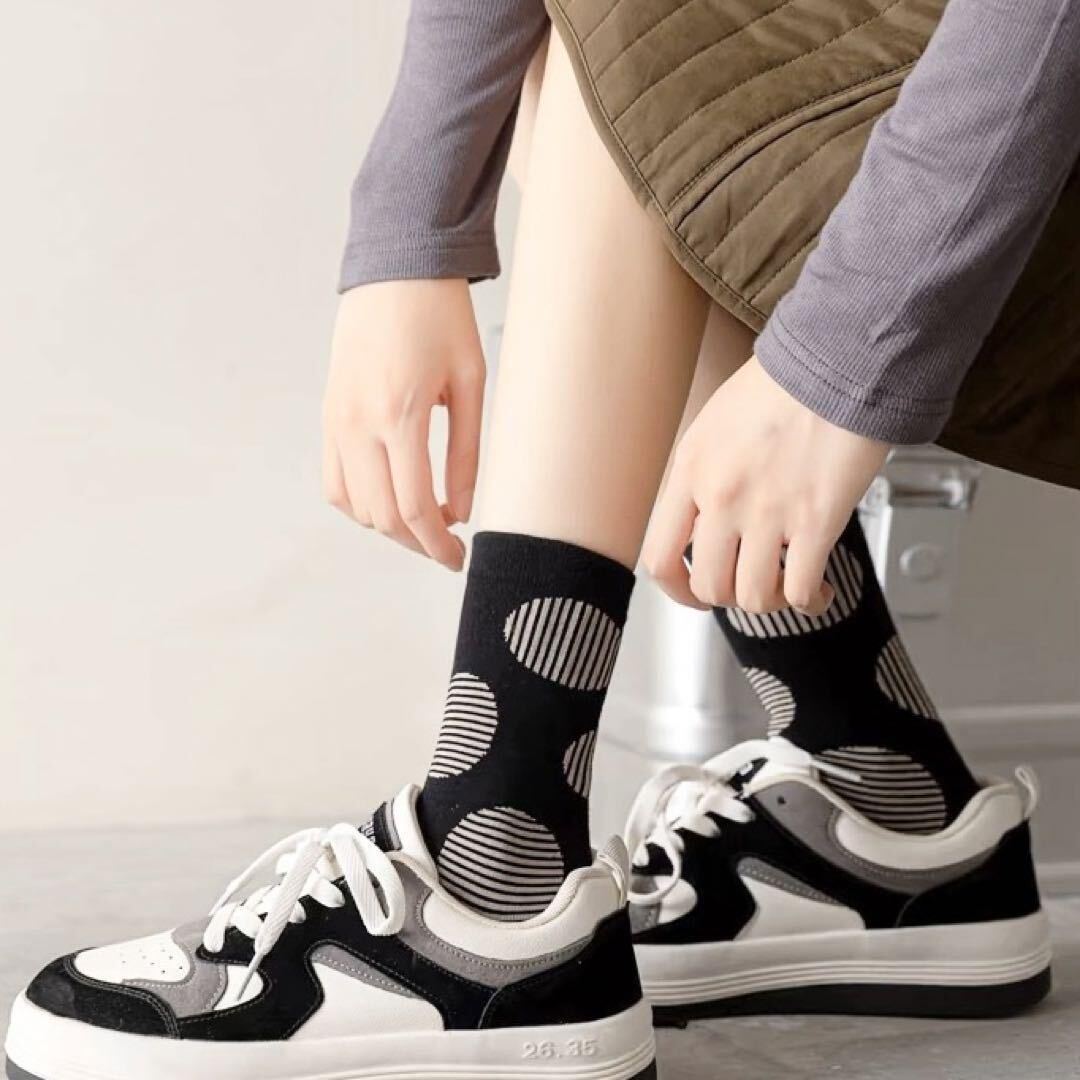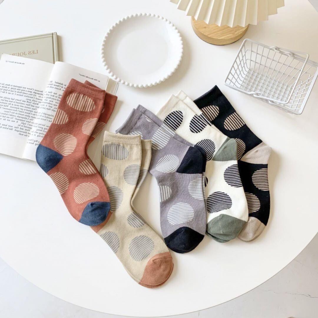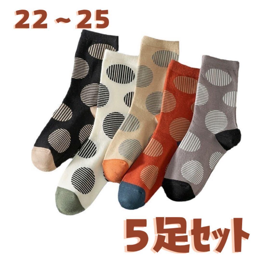 5足セットまとめ売り 靴下 ソックス レディース ドット 水玉 クルーミドル 大きいサイズ 白 黒 脱げない しましま ストライプ ボーダー夏 コットン 綿 吸汗 消臭 ワンポイント カラフル ソフト 春夏秋冬 婦人 無地 高校生 中学生 女の子 蒸れない かわいい 短い