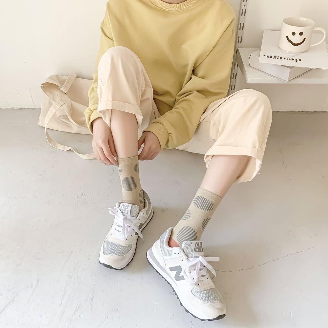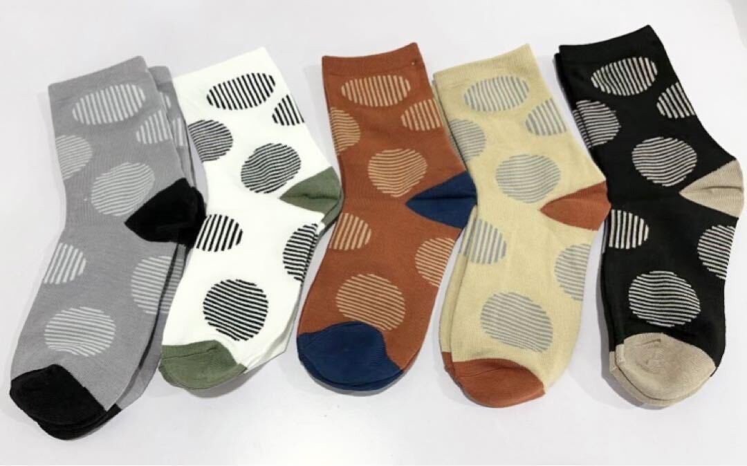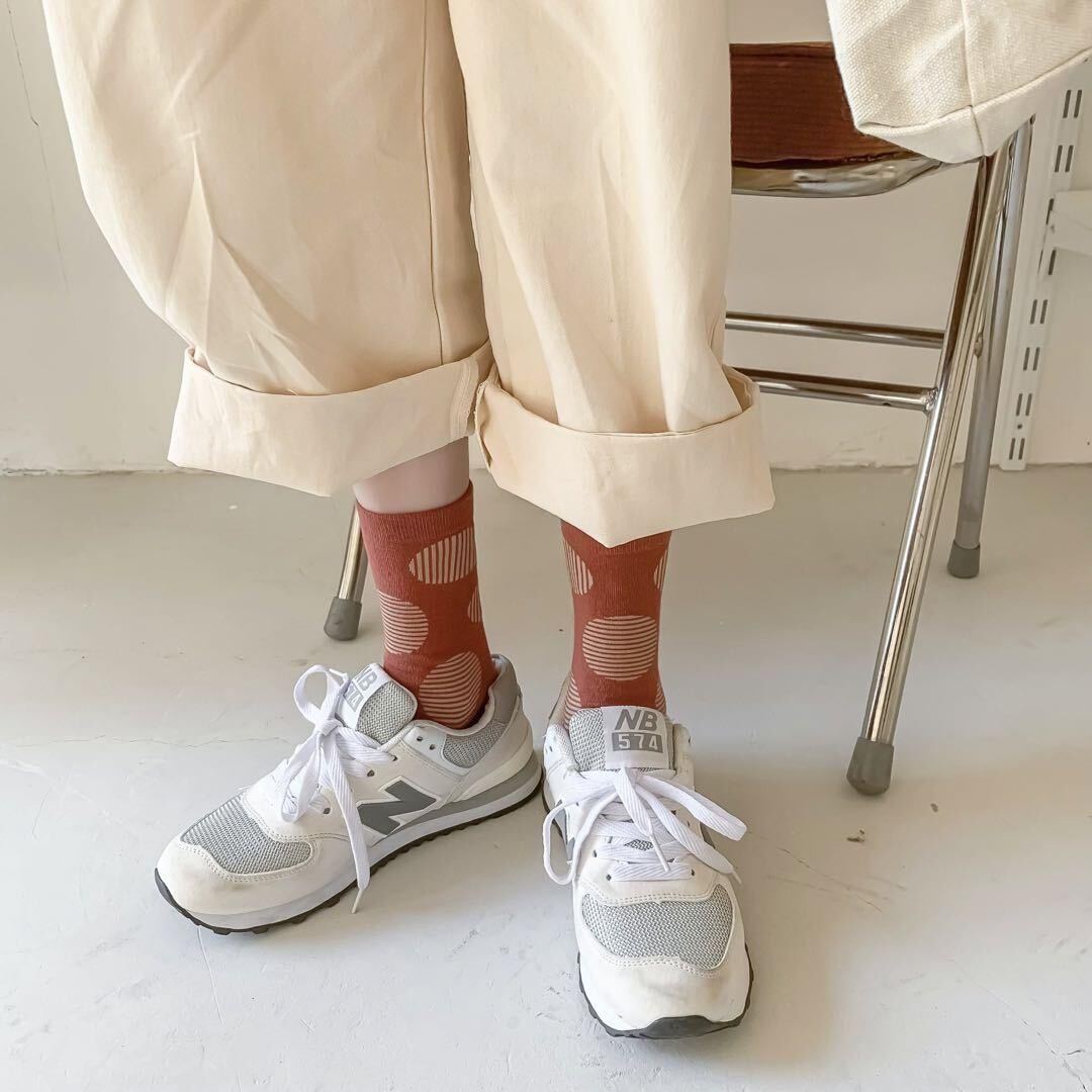 大きなサークル模様が大人可愛いクルー丈の靴下です。プレゼントにもおススメです