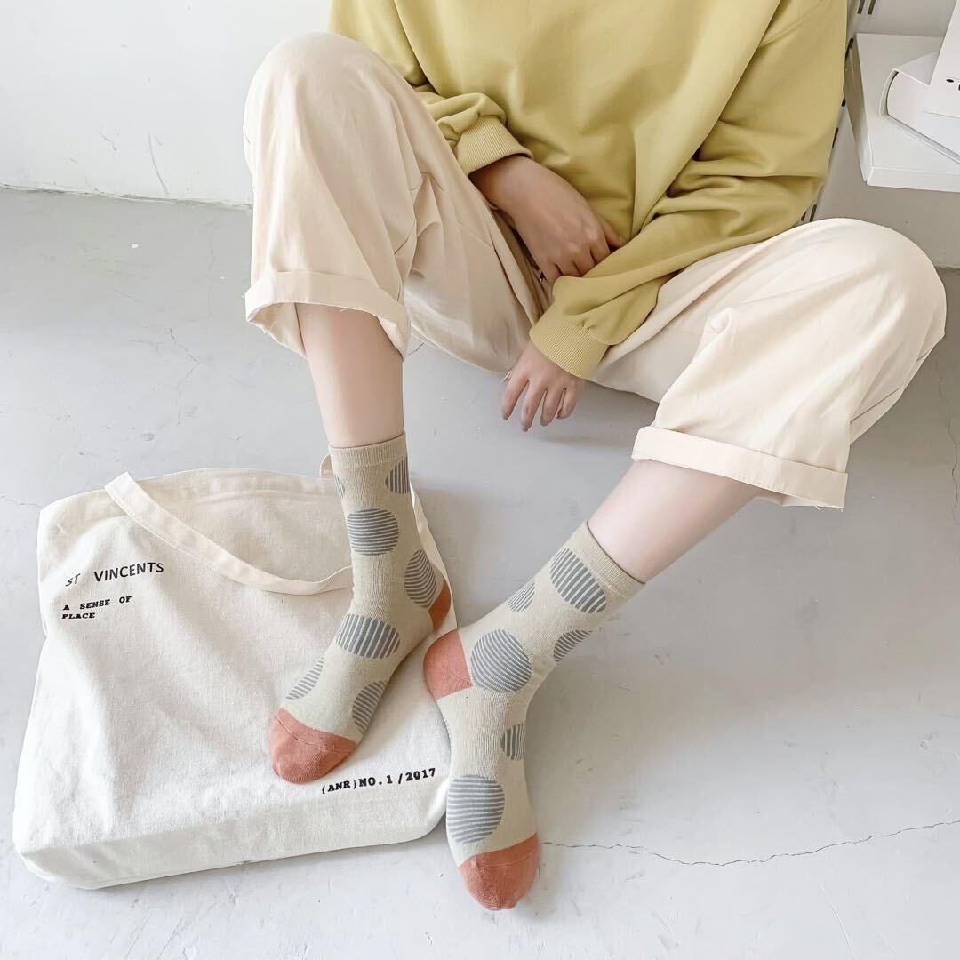 コットン ドット ソックス 大人 ナチュラル 春 夏