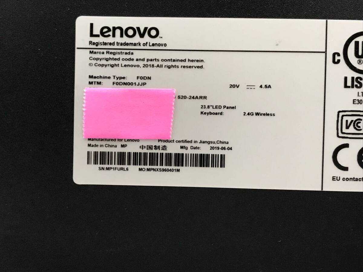 【記憶媒体無】LENOVO/液晶一体型/AMD Ryzen 5 2400GE/メモリ8GB/8GB/WEBカメラ有/OS無