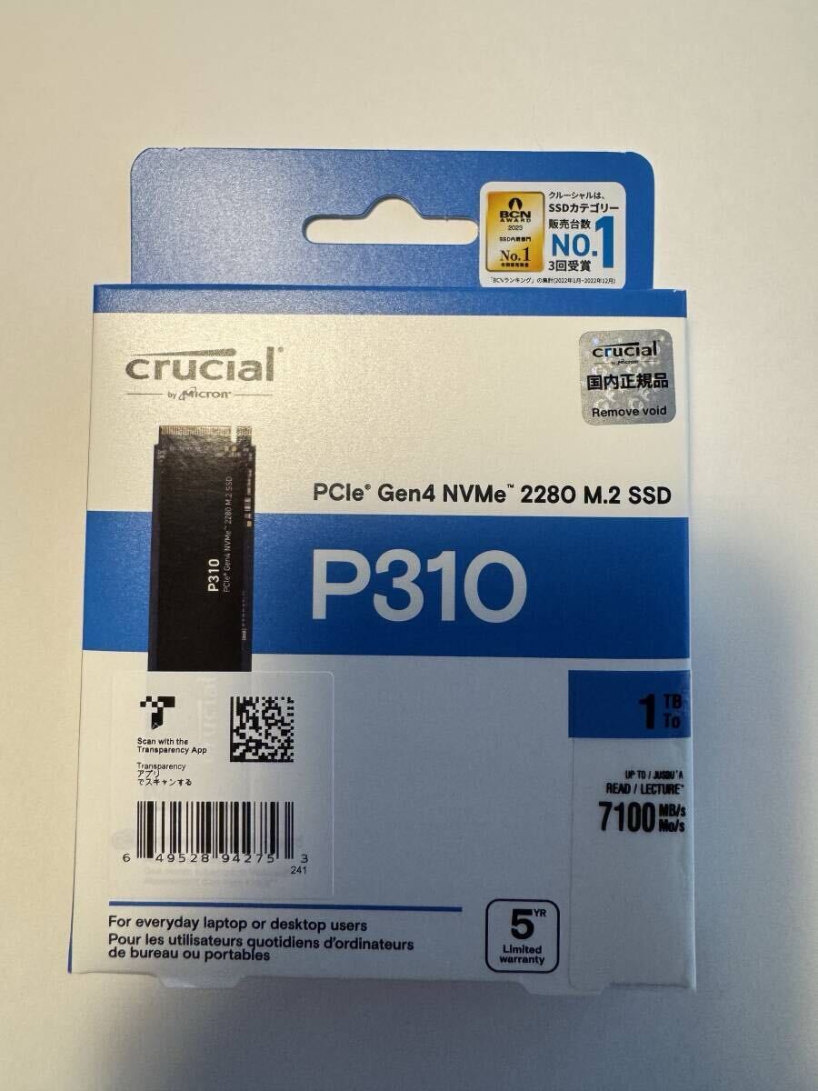 | 商品説明 | Crucial SSD P310 CT1000P310SSD8-JP ■容量 1000GB ■READ速度 7100 MB/s ■WRITE速度 6000 MB/s ■規格サイズ M.2 (Type2280) ■インターフェース NVMe / PCIe Gen4x4 詳しくは以下ウェブサイトをご覧ください。 型番末尾に/JPが入る、国内正規品になります。 https://www.cfd.co.jp/biz/product/detail/ct1000p310ssd8-jp.html |