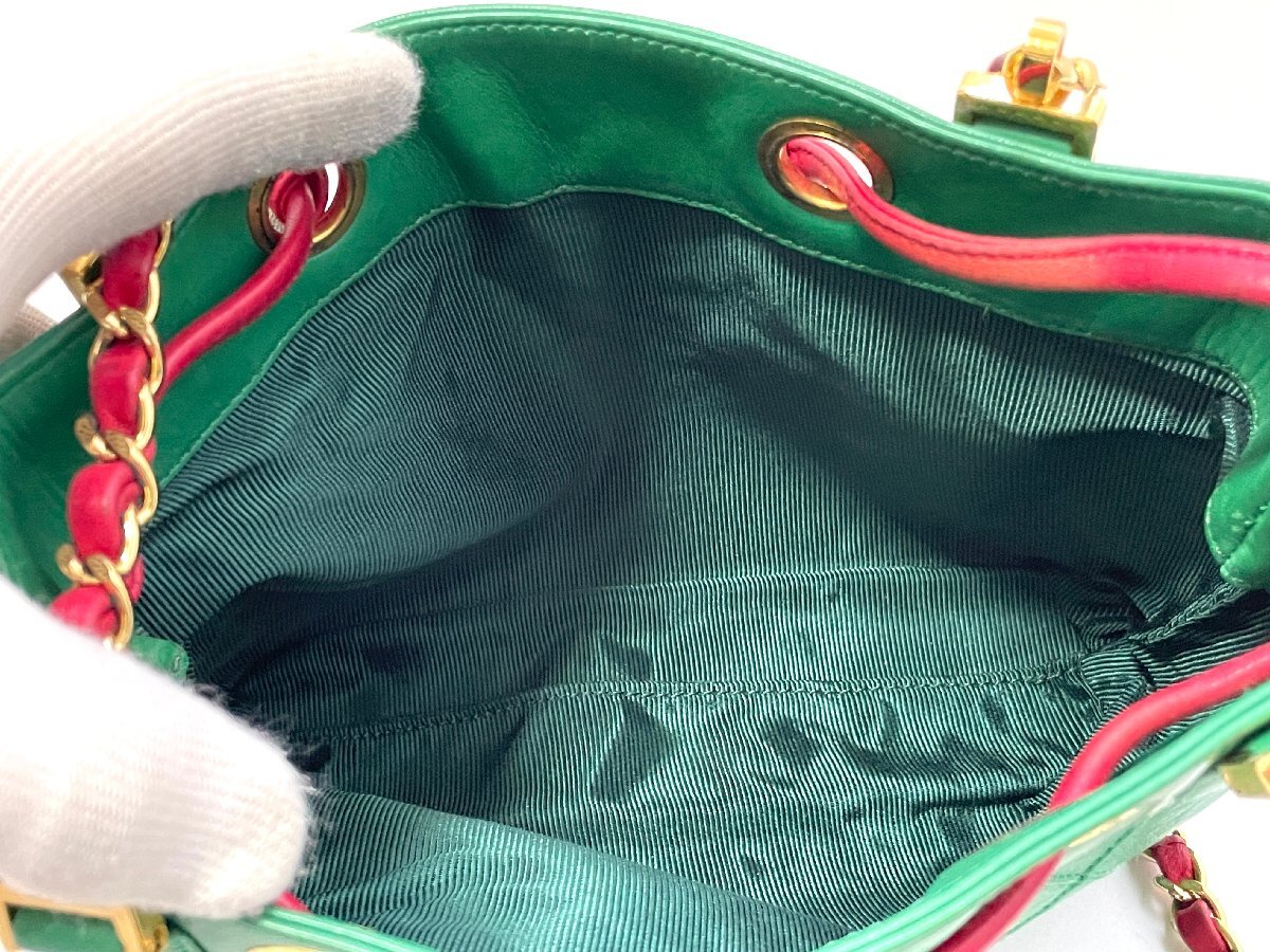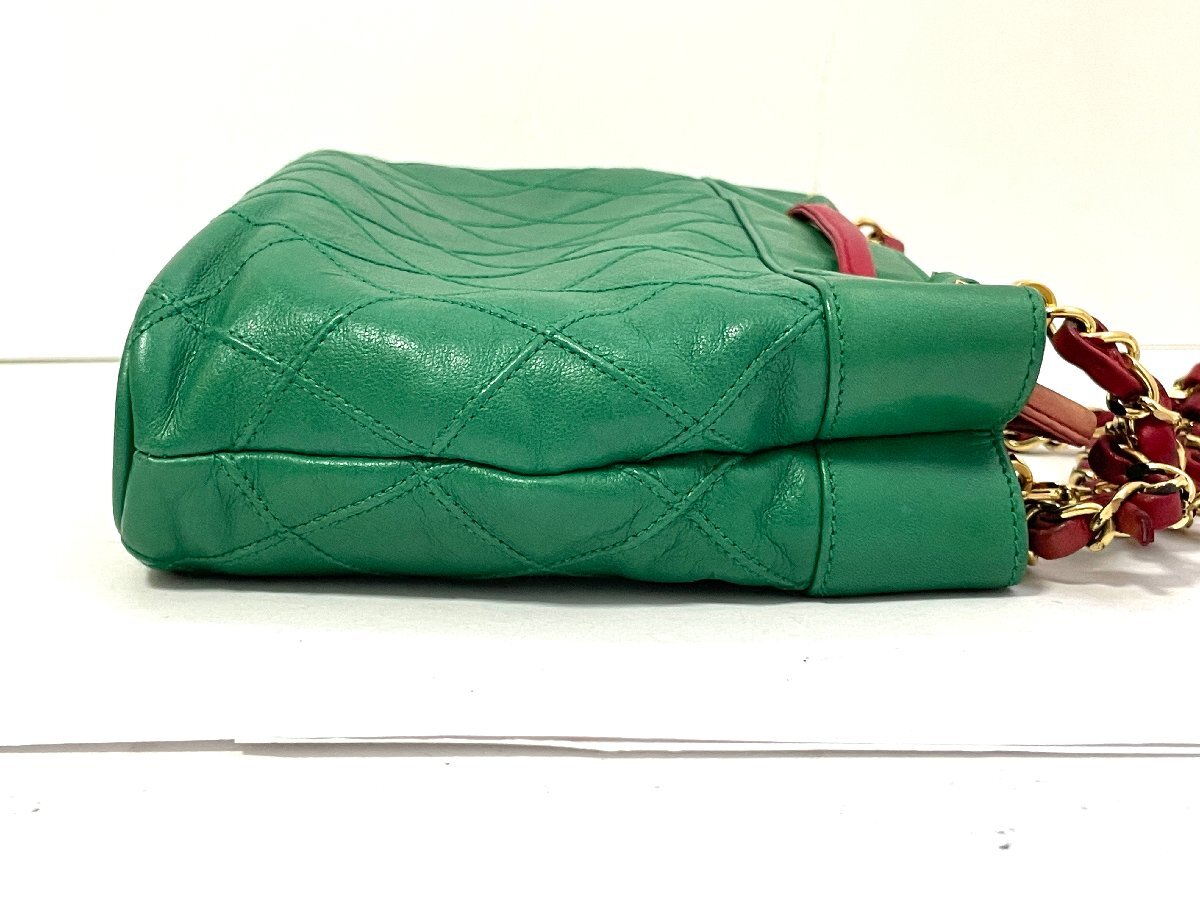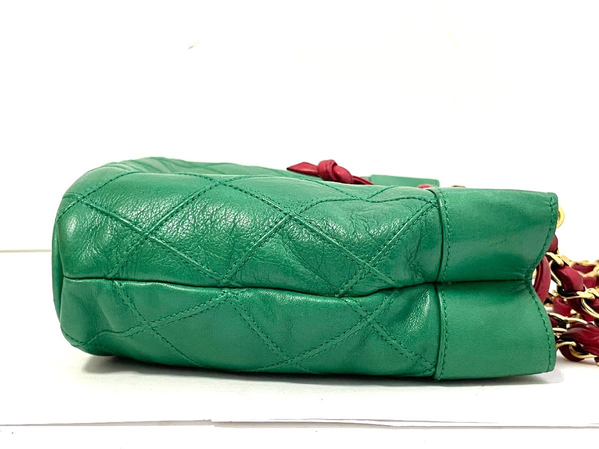 【中古】CHANEL シャネル ビコローレ チェーンショルダーバッグ カバン ラムスキン グリーン ゴールド金具