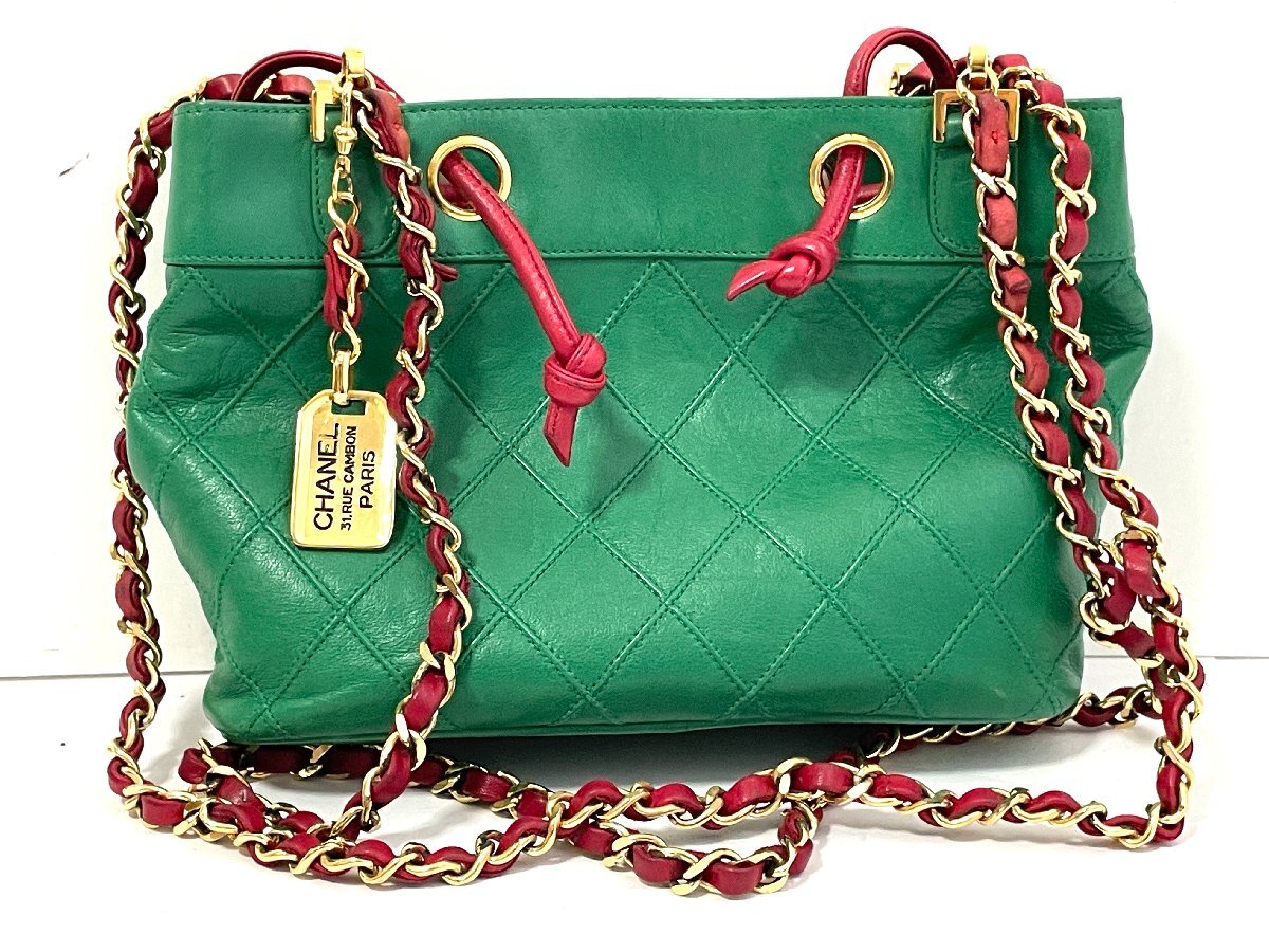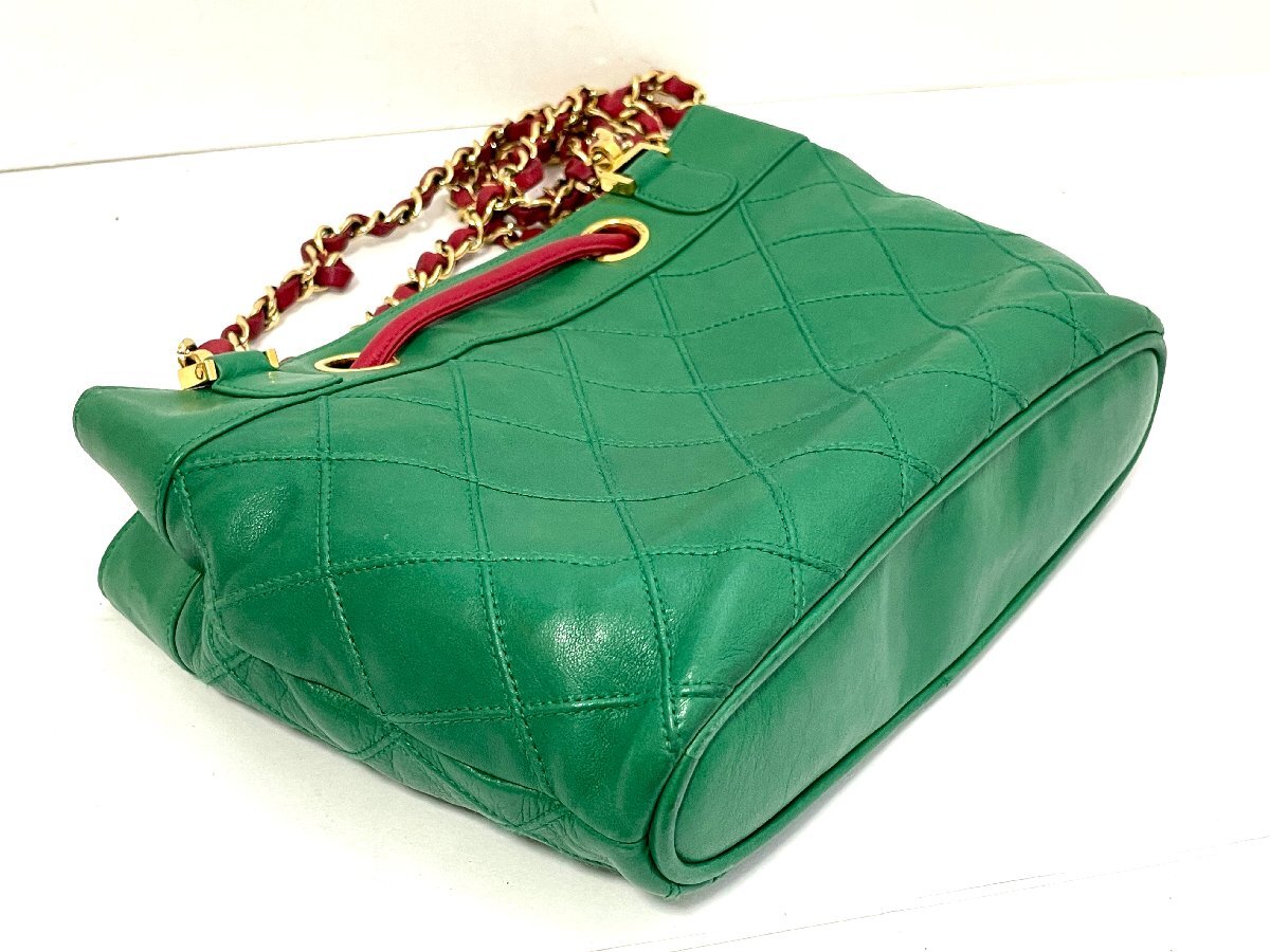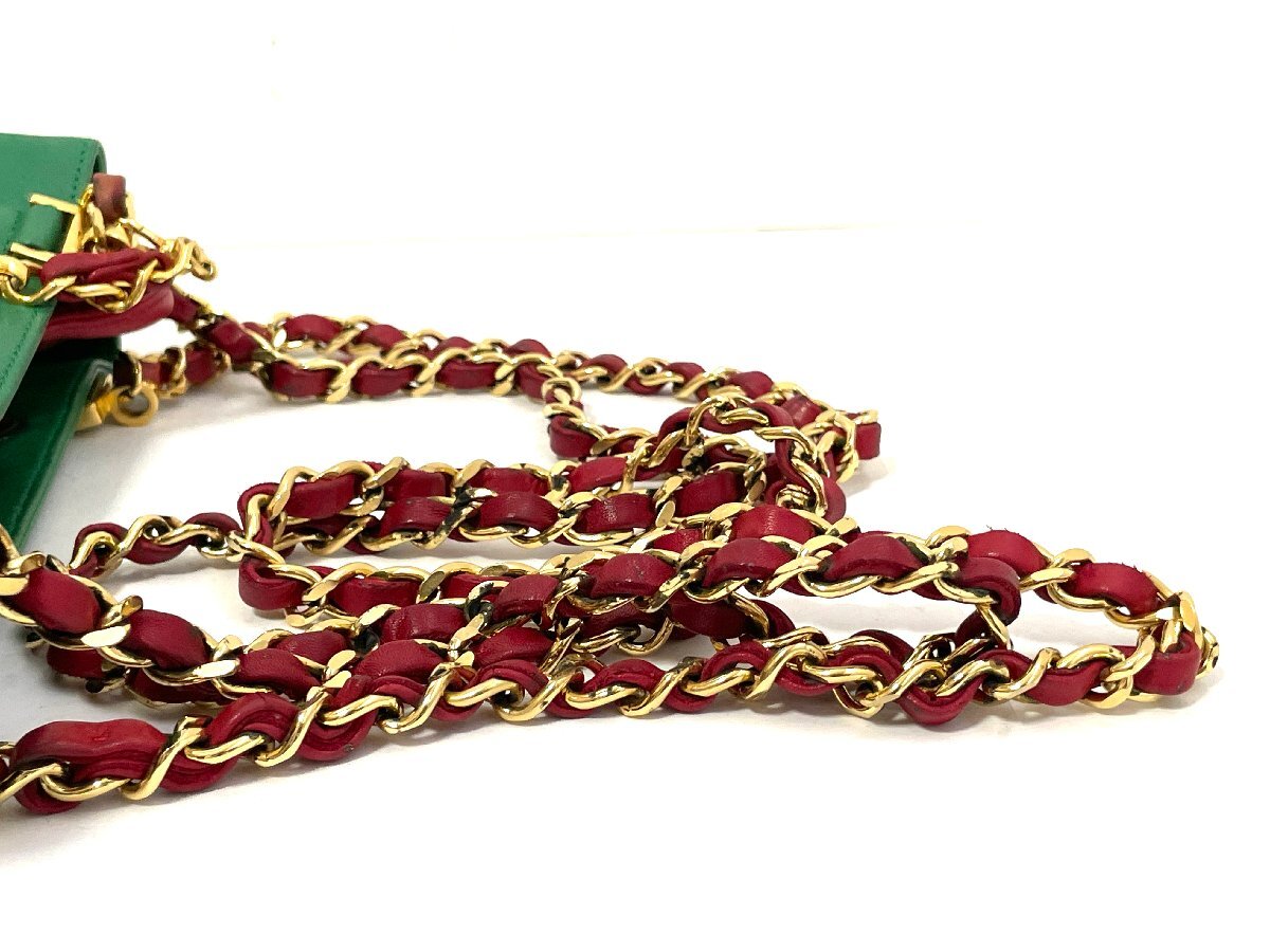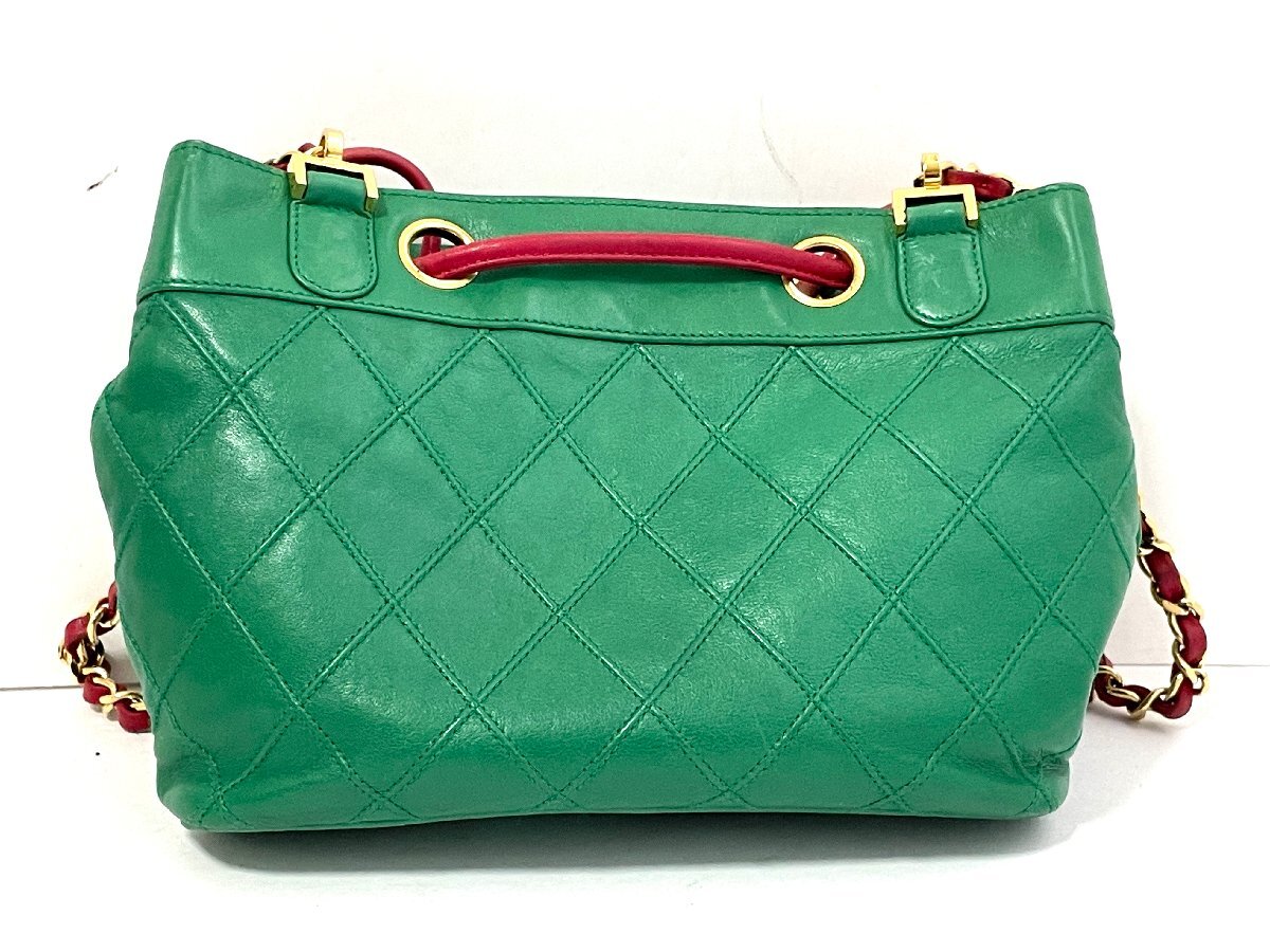 【中古】CHANEL シャネル ビコローレ チェーンショルダーバッグ カバン ラムスキン グリーン ゴールド金具