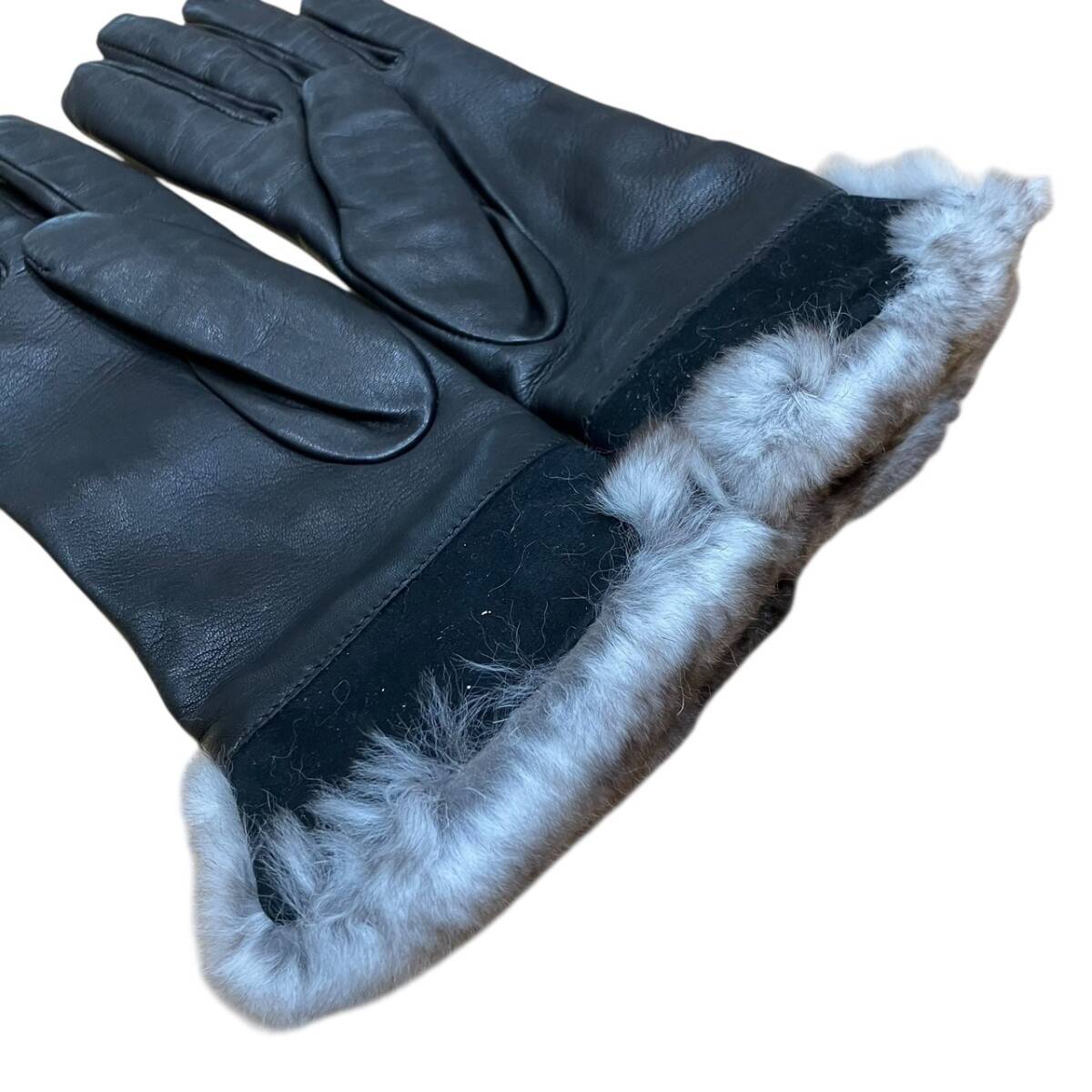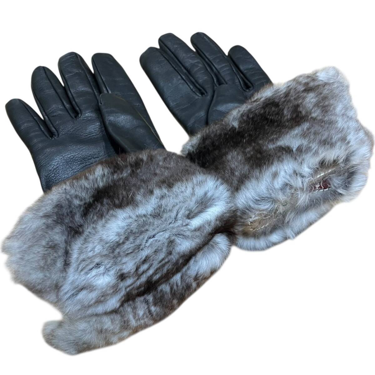 | オリラグ 手袋 グローブ レザー ラビットファー 防寒 防風 ブラック系 7 |