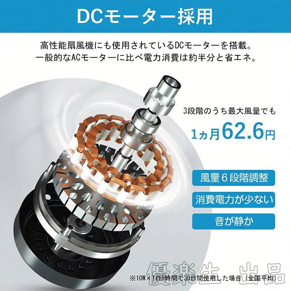 静音に優れたDCモーターで羽を回転。密閉空間の換気対策にも最適。