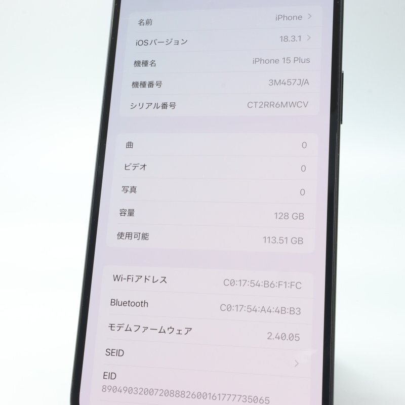 ■機種 : iPhone15 Plus 128GB Black A3093 3M457J/A