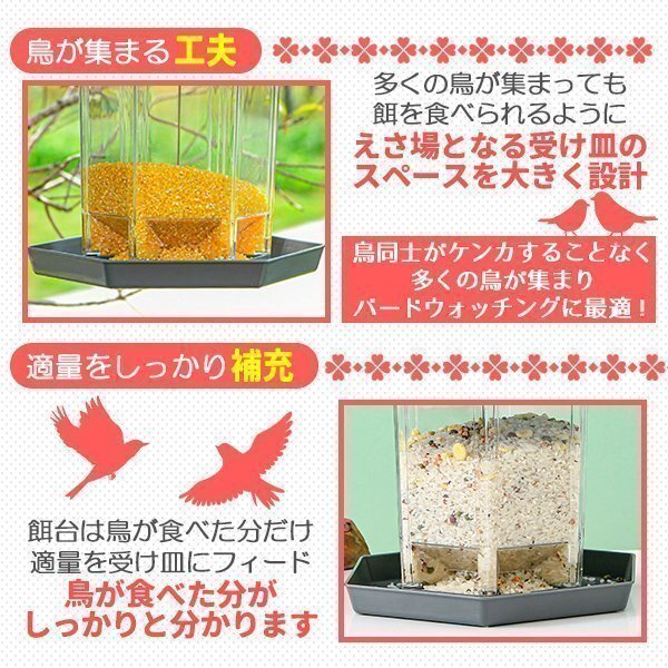 【適量をしっかり補充】餌台は鳥が食べた分だけ適量を受け皿にフィードしますので、野鳥の小鳥が食べた分がしっかりと分かります。少しずつ様々な小鳥が増えていくのを観察できるのも野鳥観察の楽しみです。