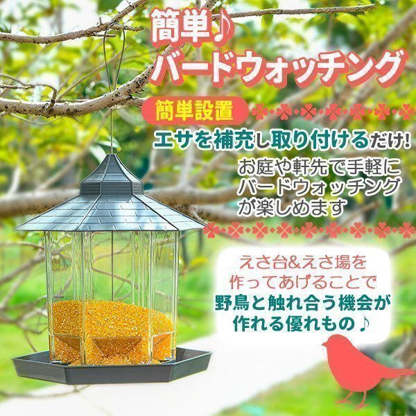 【簡単バードウオッチング】バードフィーダーはエサを補充し取り付けるだけの簡単設置で、お庭や軒先で手軽にバードウォッチングが楽しめます。えさ台、えさ場を作ってあげることで野鳥と触れ合う機会が作れる優れものです。
