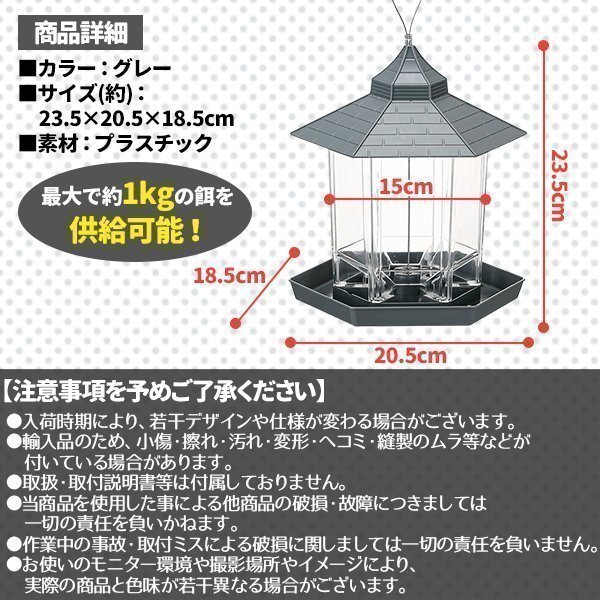バードフィーダー バードウォッチング 野鳥の餌台 鳥小屋 鳥かご 庭 ガーデン おしゃれ 野鳥 給餌器 餌台 餌場 えさ台 吊下げ グレー 小鳥