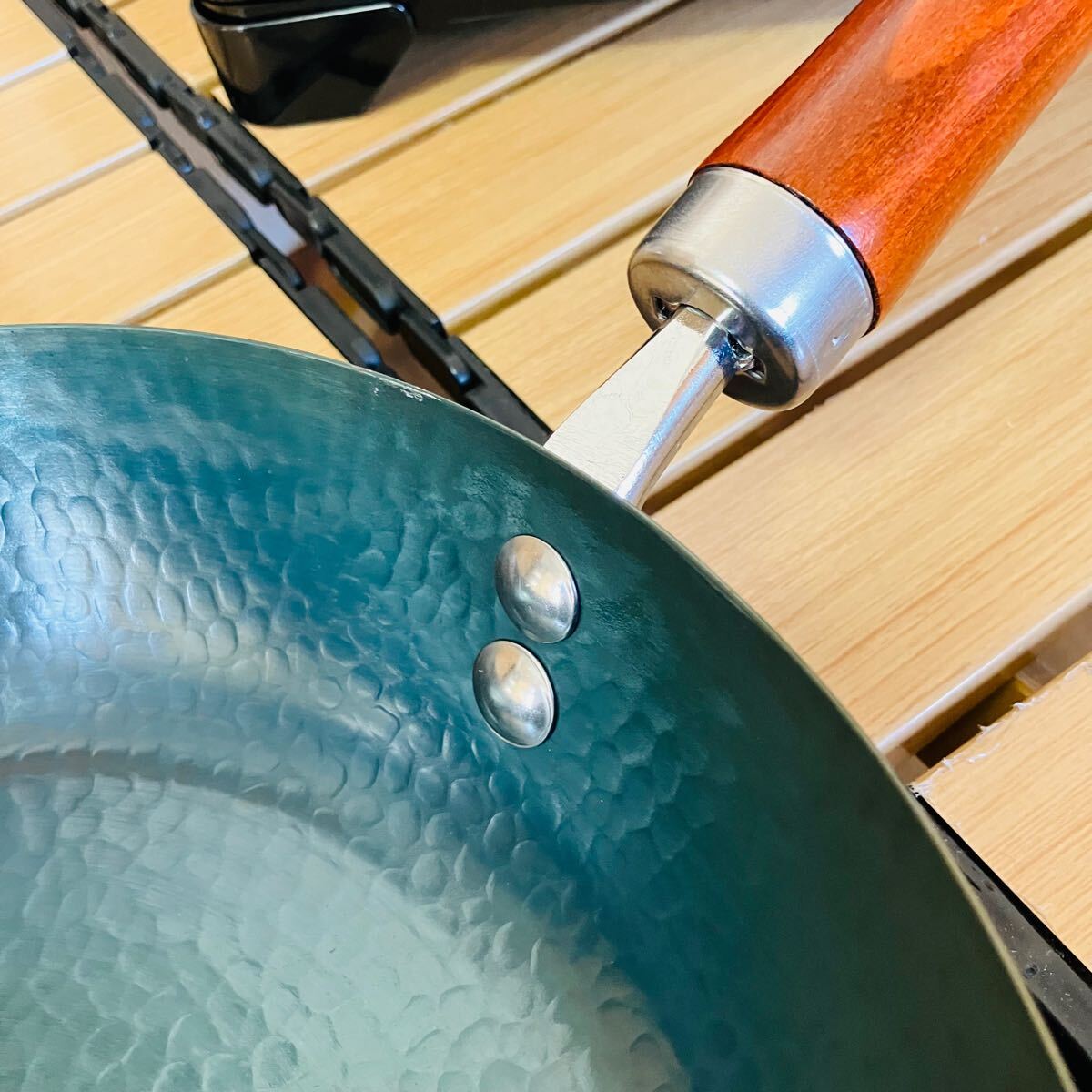 アウトドア用 鉄打鍛造鉄器 鉄鍋鉄板 木製持手 1000g 厚さ1mm オリジナル フライパン 26センチ キャンプ 野外登山