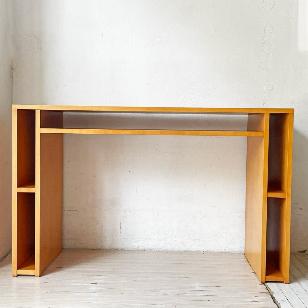 | コメント | ナチュラルでモダンなデザインをしたコンソールテーブルです。 明るめな色味が美しく、天板・脚部に空間を設けたデザインの効いた一品。 浮遊感と共に圧迫感を軽減してくれるデザインです。 また、設けられた空間には、本やPC、小物などを収納することができます。 ナチュラルな木の風合いは様々なお部屋のスタイルにマッチしてくれそうです。 奥行は41cmとややコンパクトで設置場所を選ばないのもポイントで、デスクからコンソール・カウンターなど幅広い用途で活躍してくれるこちら。 お気に入りのフラワーベースやデコレーションアイテムでインテリアコーディネートを楽しめる逸品です。 ※当ショップは、主にリサイクル品を取り扱っております。基本的にUSED品である事をご理解頂き、ご入札をご検討下さいませ。 |
