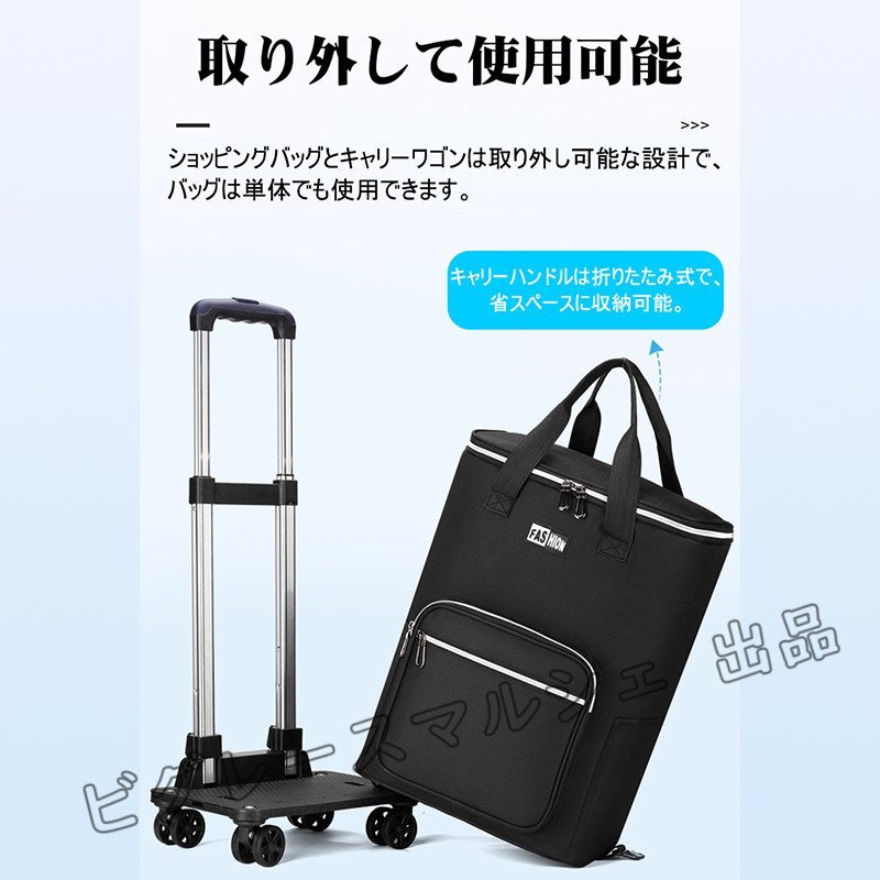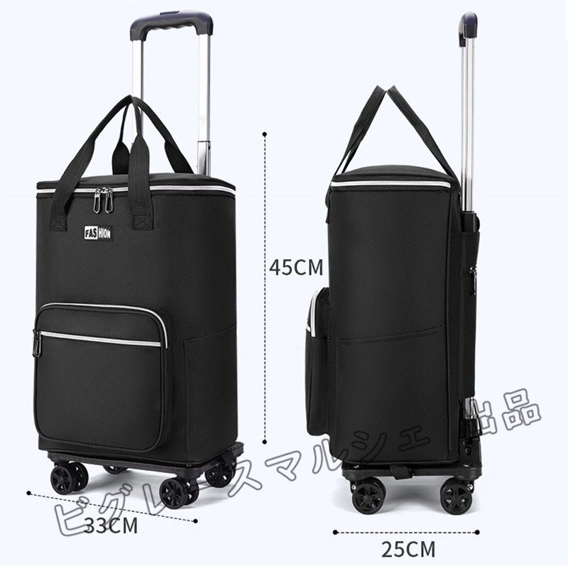 この多機能キャリーカートは高品質なポリエステル防水素材を採用しており、水に濡れても水滴となって弾き、軽く拭くだけで乾いた状態を保てます。内部にはアルミホイル素材を使用し、保温・鮮度保持に優れています。合理的な多層収納設計で、35リットルの大容量が日常の買い物や収納ニーズに応えます。伸縮可能なハンドルと高品質TPE製の360度回転キャスターを装備し、スムーズな移動を実現。全体の重量はわずか1.2kgで、耐荷重は15kg。軽量かつ実用的な設計です。分解可能で洗浄も簡単。ブラックとブルーの2色展開で、ご自宅やお出かけ時の強い味方となります。