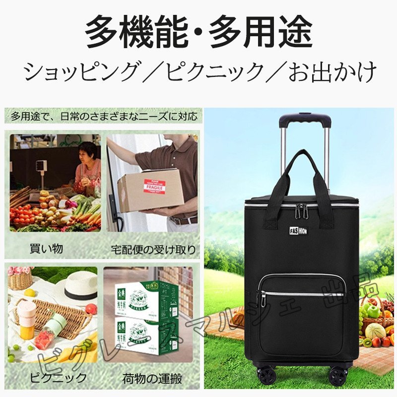4輪タイプ 横押し可能 おしゃれ バギング 保温保冷 ショッピングキャリー ショッピングカート 35L シルバーカー 買い物カート hw1356bk