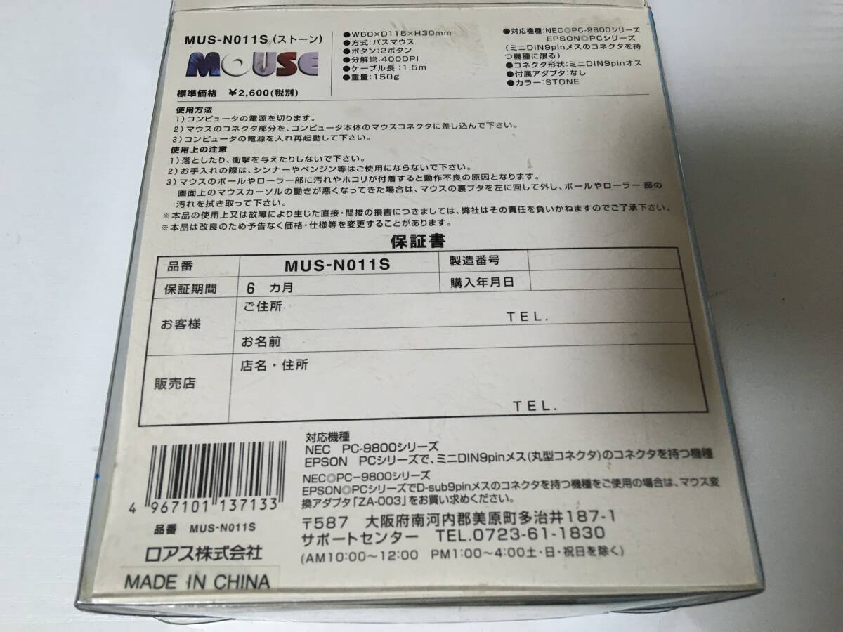 | PC-9801 PC-9821 PC-98用バスマウス 社外品 中古 ロアス MUS-N011S パッケージ入り 丸ピン仕様です。 買って開封したものの一度使ったか使ってないかぐらいで、 パッケージに戻してしまい込んでいたのが発掘された物になります なので、ほとんど使用感が無いです。 | ||
