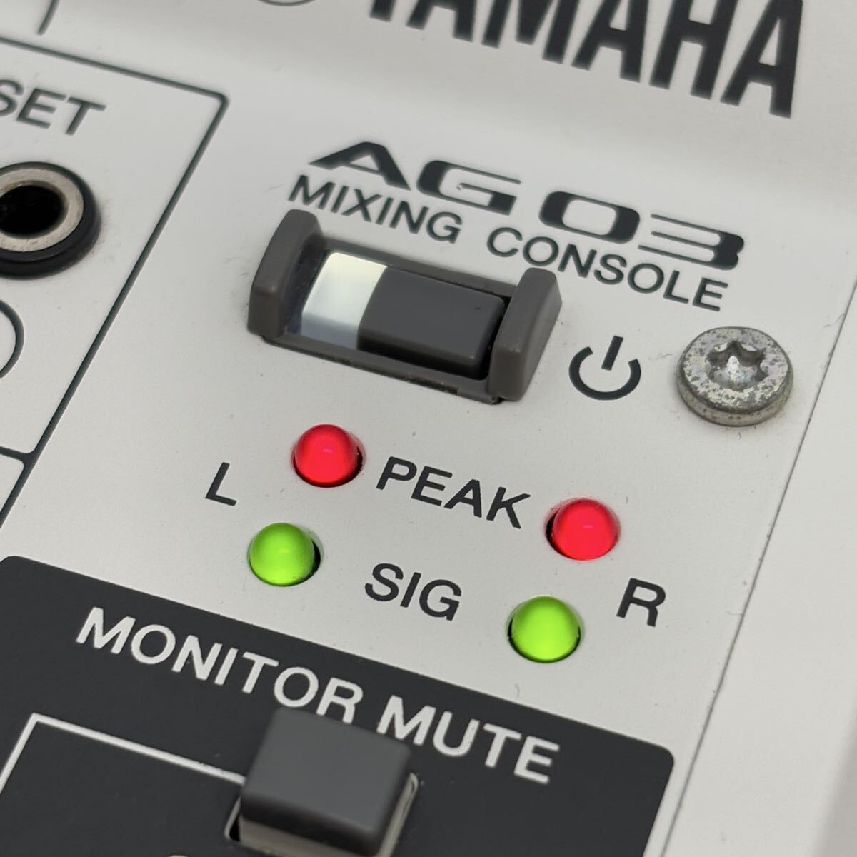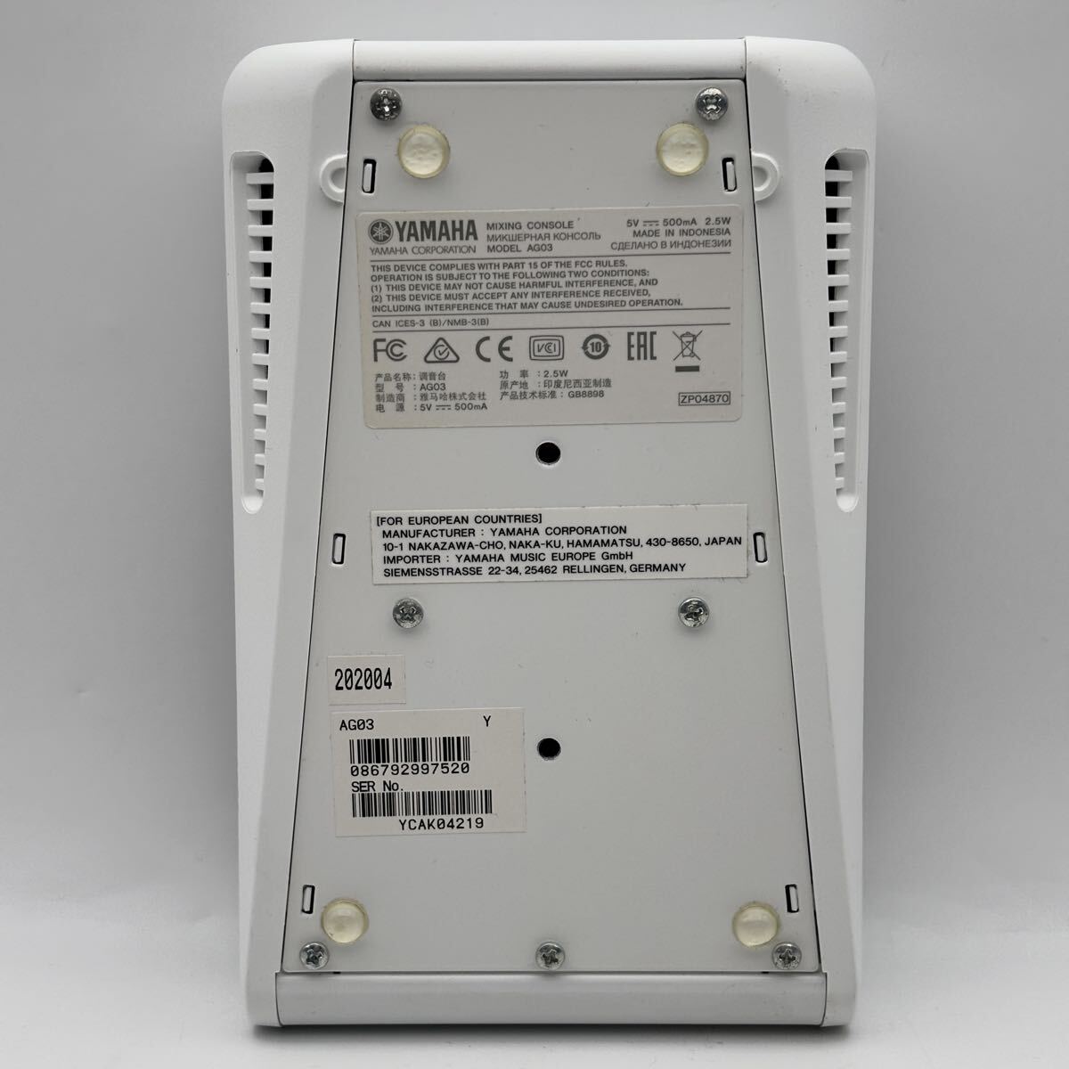 ◇ YAMAHA AG03 ミキシングコンソール 通電確認済 箱付 付属品写真参照 電源コード欠品 動作未確認 直接引取り大歓迎 ヤマハ ミキサーになります。