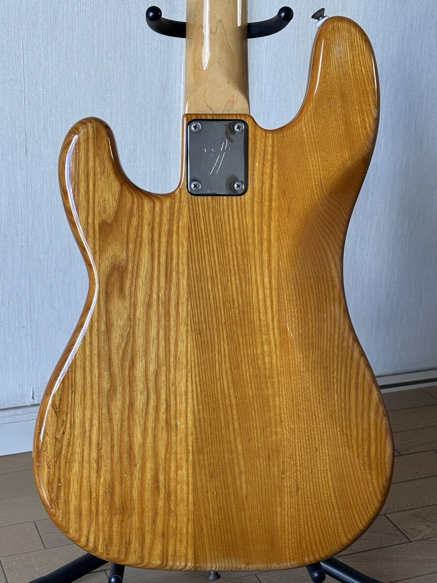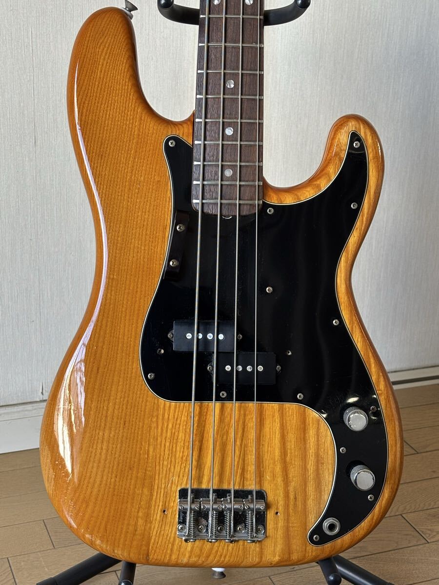 ナチュラルカラーのアッシュボディ、ローズウッドラウンド張りメイプルワンピースネック、ブラックガードの70年代ならではのスペック。