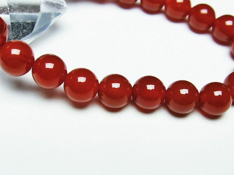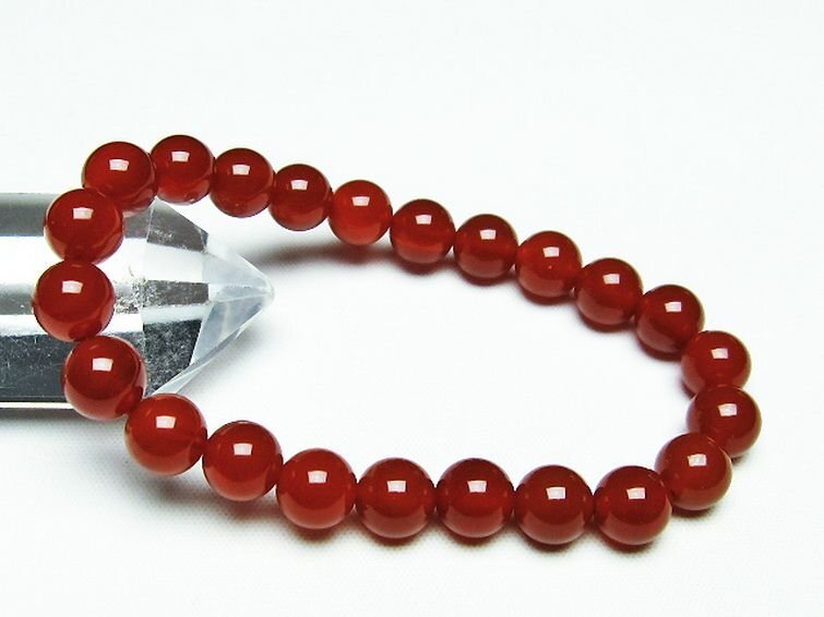 | ■商品名: 赤アゲートブレスレット ■商品ID: T57-6754 ■商品重量:約 17.1g ■商品サイズ:内周約:157mm(±5mm)粒直径約:8mm(±0.5mm) 【アゲート(瑪瑙)】 和名では瑪瑙(めのう)といい、アゲートの模様が馬の脳のように見える事からこのような名前が付けられました。 アゲートは赤、緑、青、黄、黒など、様々な色に着色されることで石本来のパワーがさらにアップするといわれており、着色により魅力を増す天然石はアゲートだけとも言えます。 さらにはアゲートを組み合わせるとペアになっているペアアゲート(トレジャーメノウ)は龍穴を生み出すとされ、風水的にも良いといわれています。 アゲートは古来より日本やインドやチベットなどで魔よけやお守りとされてきました。 失敗や不幸を遠ざけ金運や仕事運、成功運とも結び付けてくれる効果のほか、安産のお守りにも良いとされています。 さらに家庭円満や対人関係をスムーズにするなど、オールマイティな効果を持った石です。 ⇒ アゲートをもっと詳しく ◆ワンポイント情報 アゲートはカルセドニーの変種で、染色がされていなくともそれぞれの種類に多様な色があります。 ざっと仲間を挙げてみてもオニキス(黒)、サードニクス(橙色)、ブルーアゲート(青)、グリーンアゲート(緑)、イエローアゲート(黄)、ブルーレースアゲート(縞青)、モスアゲート(縞緑)、天眼石(縞黒)、カーネリアン(橙色)、ジャスパー(多様な縞)などとても多くの特徴と色合いを持っています。 |