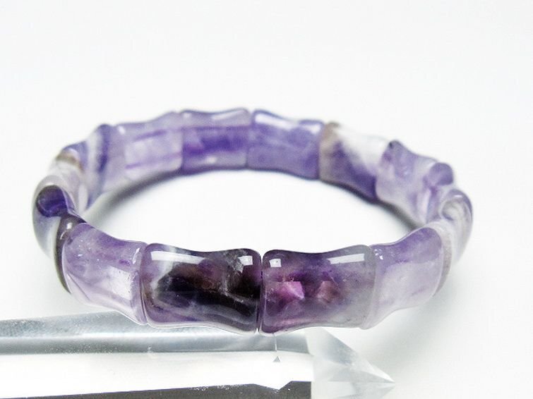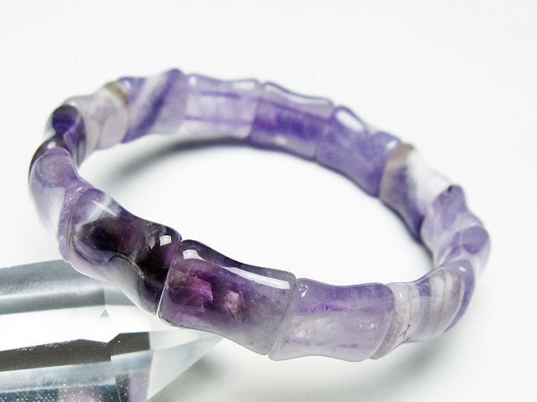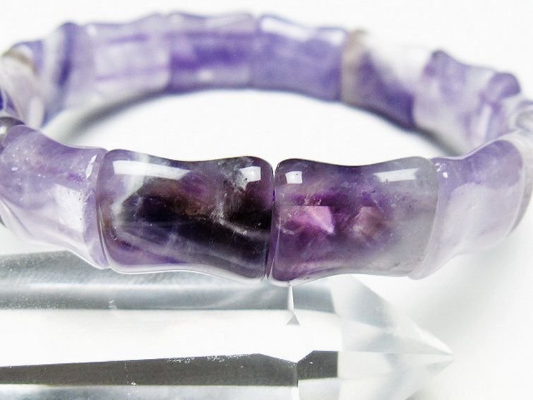| ■商品名: アメジストバングル ■商品ID: T281-2319 ■商品重量:約 26.2g ■商品サイズ: 高約:14mm 横約:12mm 厚約:7mm 内径円周約:165mm(±5mm) 【アメジストクォーツ(紫水晶)】 アメジストは鉄分によって紫色に発色した水晶の一種です。 名称はギリシャ語で酒の意味のmethyと否定辞のa、つまり「酒に酔わない」「この石でできた盃で酒を飲めば悪酔いしない」に由来するとされています。 「酒に酔わない」と言われる通り、アメジストは体調面への作用が大きく、血液を浄化して解毒、解熱作用を高め皮膚病の治療や不眠を解消するのにも用いられたと言われています。 アメジストは真実の愛を導く愛の守護石とも呼ばれ恋愛運UPの石としても広く知られています。 理想的な出会いをもたらす効果や持ち主に美や調和を与え、セクシーな魅力を引き出すとのことですので恋愛成就のお守りとしても最適といえるでしょう。 また、くよくよしたり傷ついたりしている時には癒し、目前の困難を乗り越えていけるように精神を強くするヒーリング効果も期待できます。 不眠にも効果があるとされていますので、ストレスを抱えている人にもおすすめの石です。 ⇒ アメジストをもっと詳しく ◆ワンポイント情報 アメジストは産地によって結晶や色味の傾向が変わります。 例えばブラジル産は結晶が大きめだが色味は少し薄め、ウルグアイ産は結晶は小さく細かいが色味は濃紫の傾向、メキシコ産は細長い結晶でライラックの様な明るく透明感のある紫など特徴が異なります。 産地による好みが人によって分かれるのもアメジストならではと言えるでしょう。 |