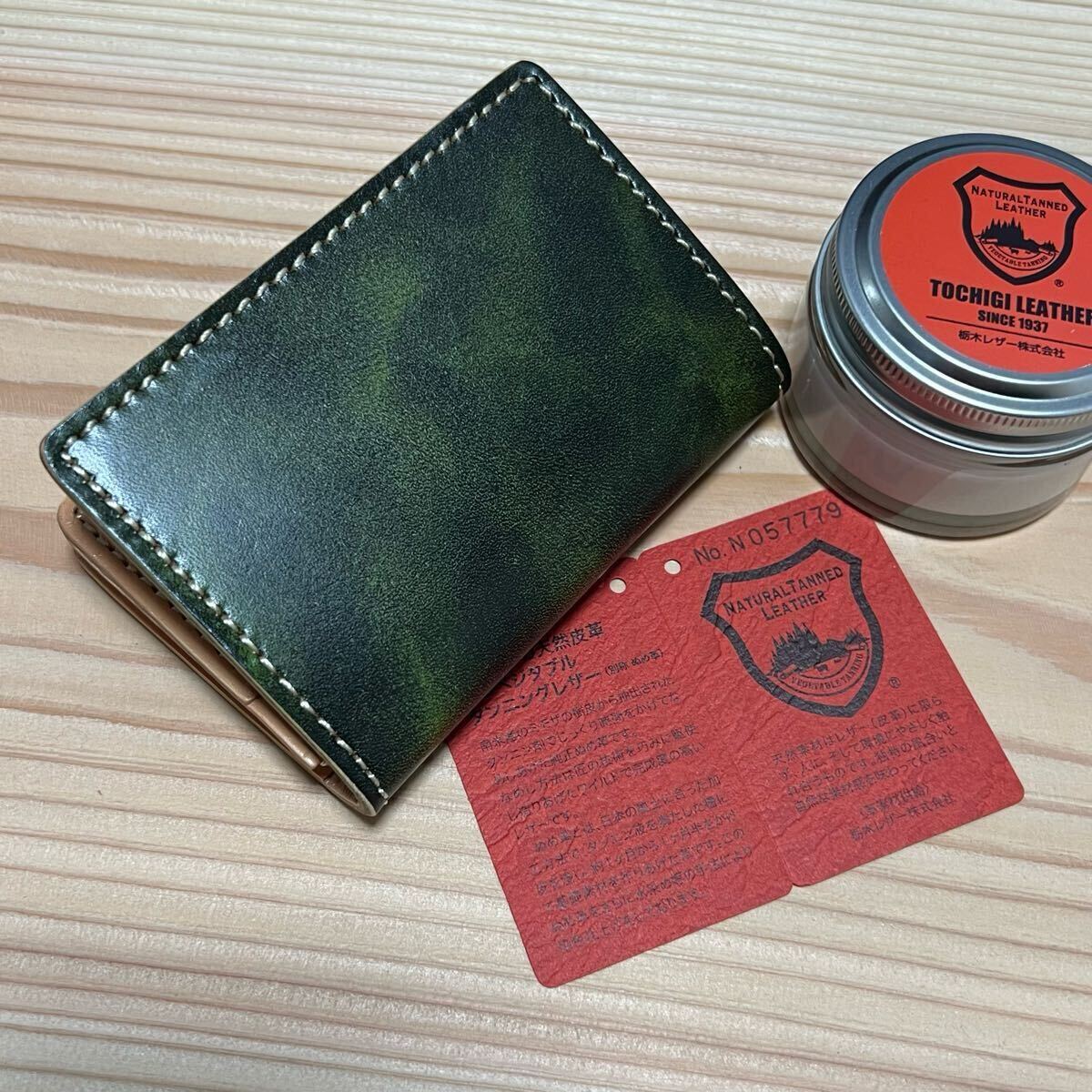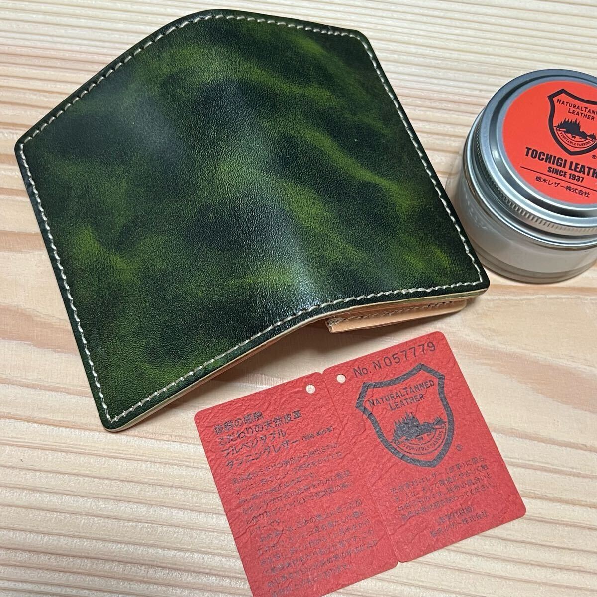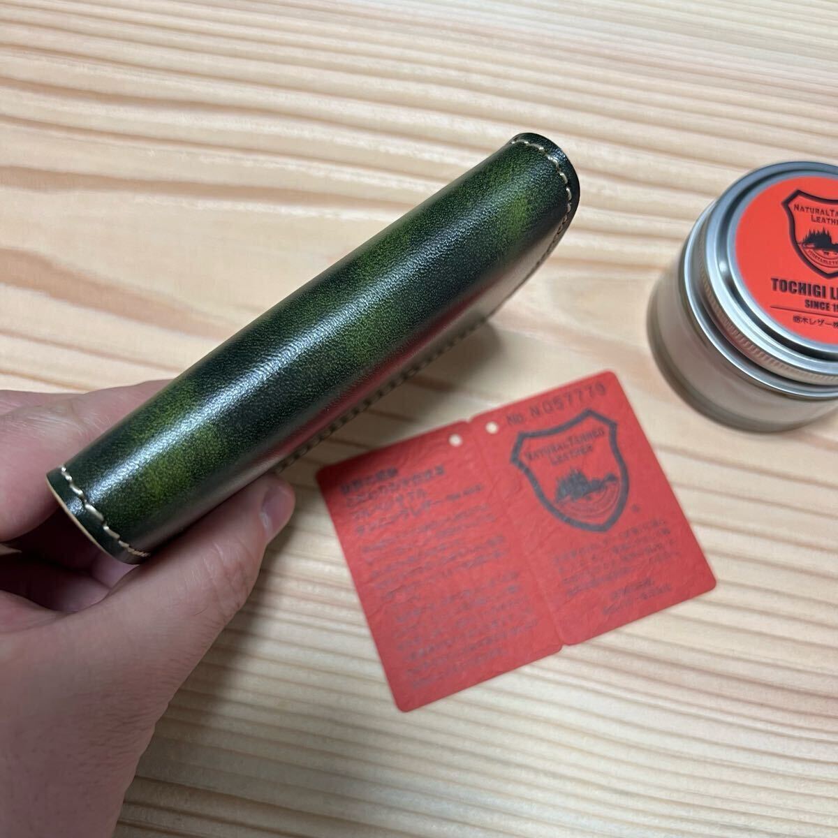栃木レザーを使用しました、栃木レザーに手作業で何度も染料を塗り込んだ。