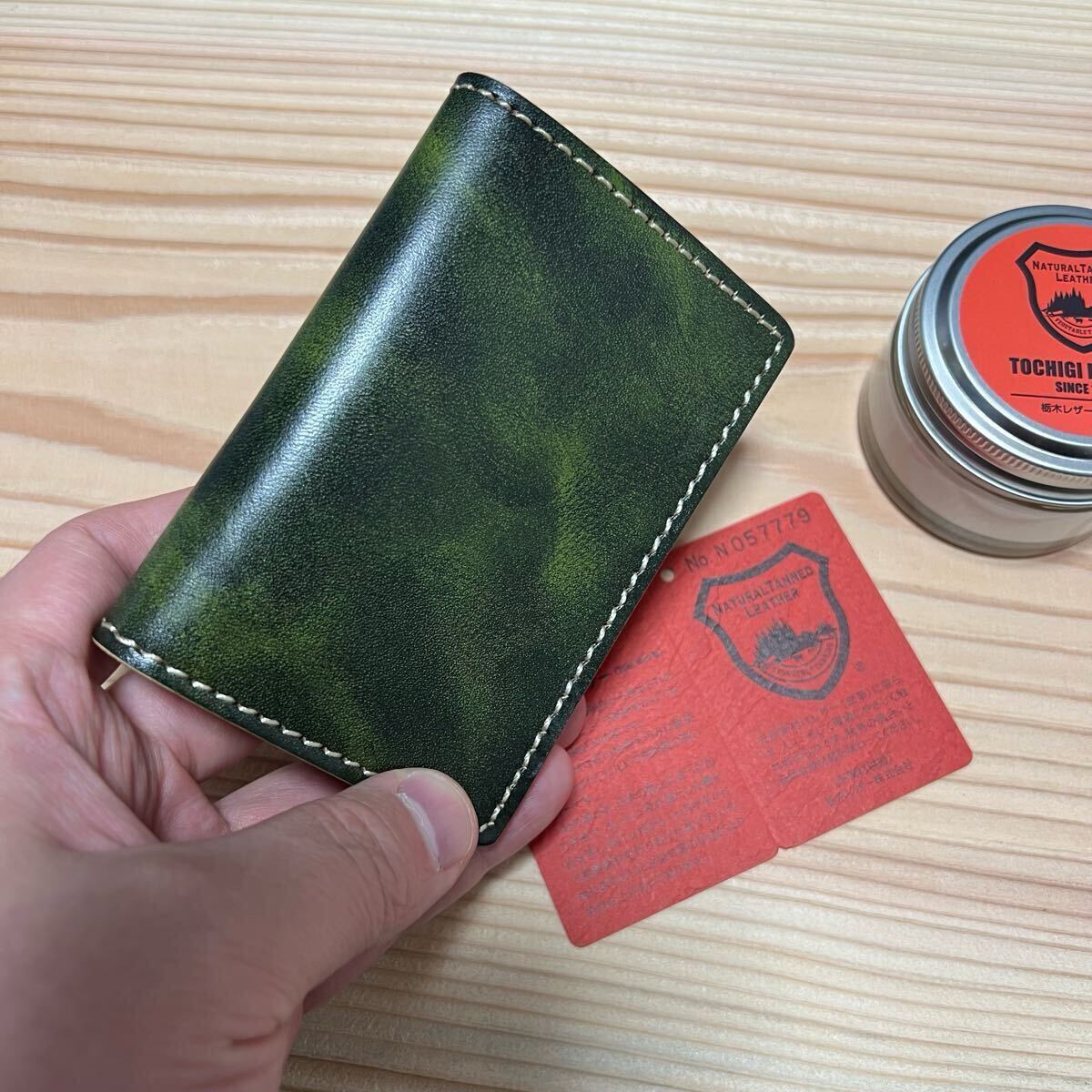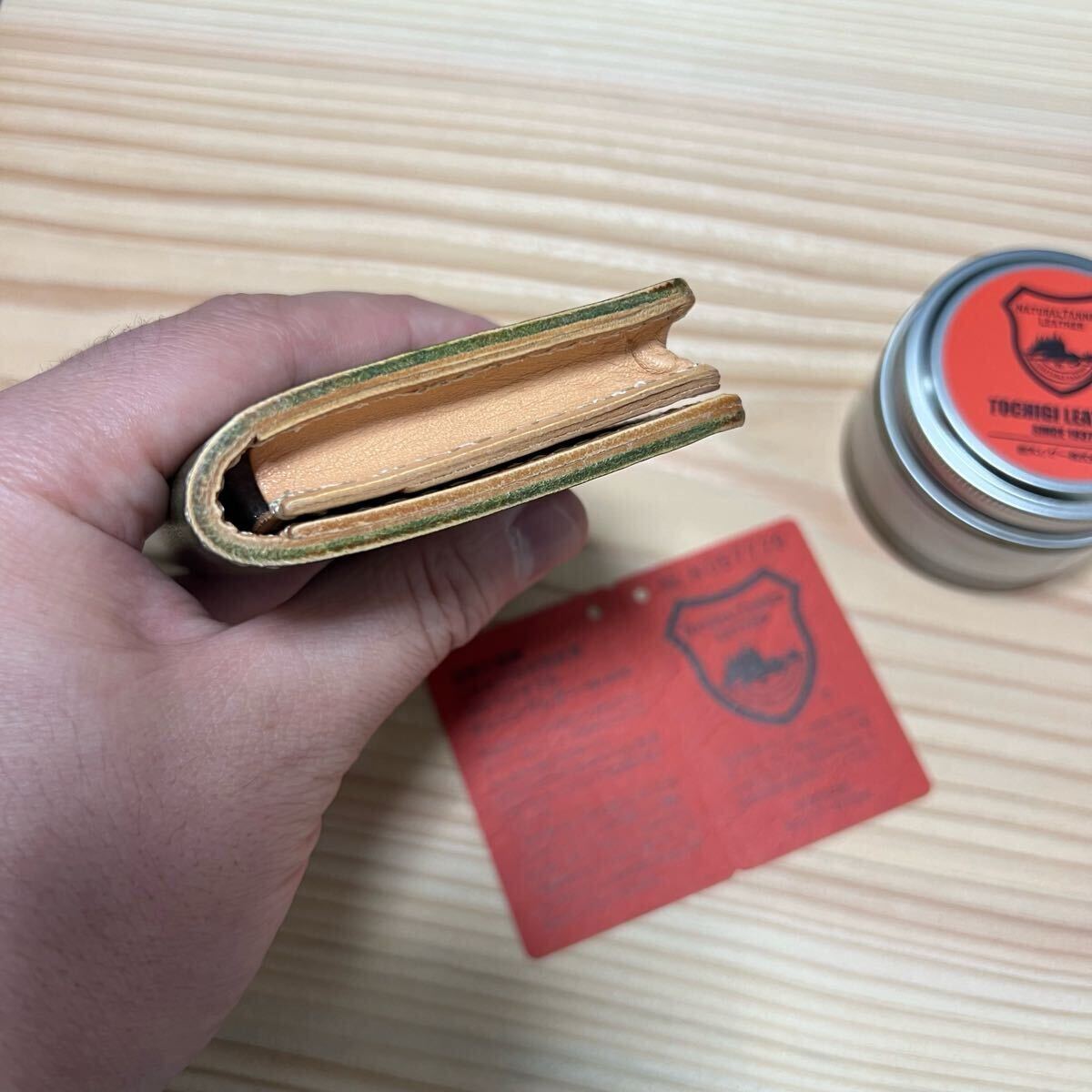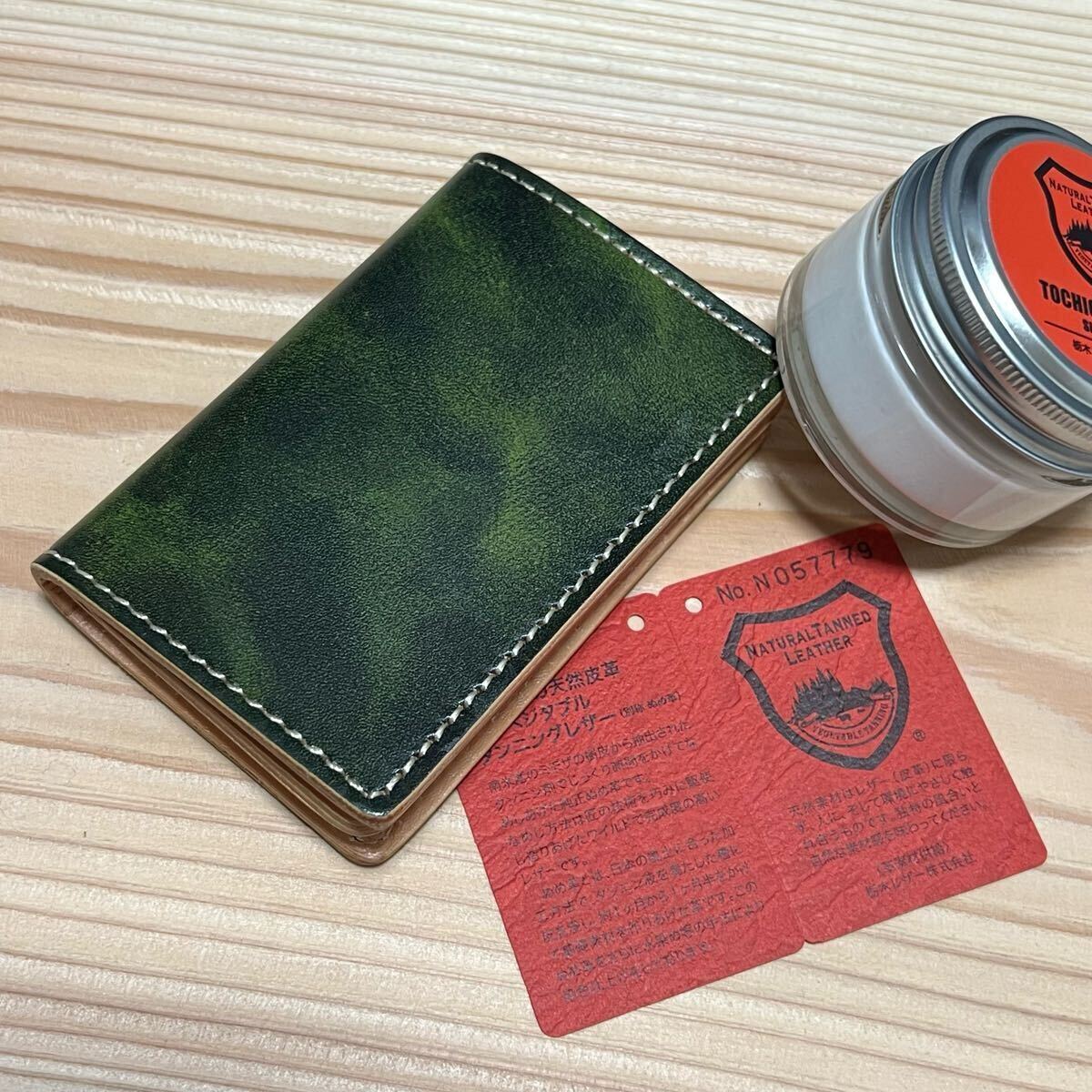 栃木レザーを使用しました、栃木レザーに手作業で何度も染料を塗り込んだ。