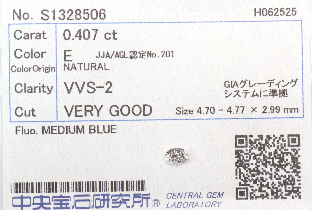 VVS2!0.407ct 天然ダイヤ E(ナチュラルカラー)VERY GOOD