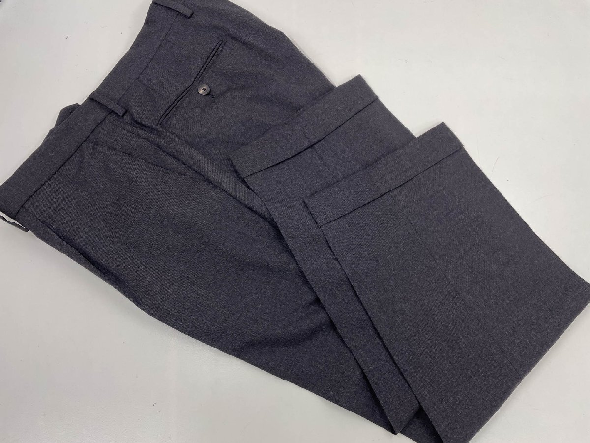 ・スラックス・・・ウエスト実寸約92センチ(4センチ出し、3センチ詰めが可能です)、股上約27センチ、渡り幅約35センチ、股下約65センチ、総丈約89センチ、裾幅約21センチ、ダブル仕上げで、ダブル幅4センチ、最大9センチ出しが可能です。