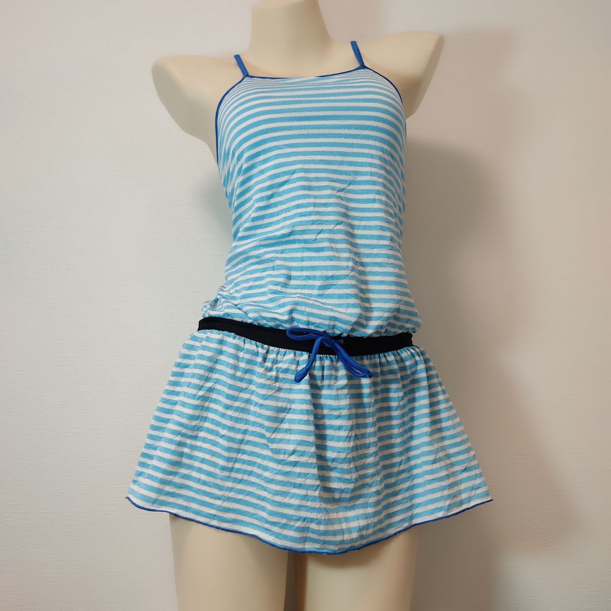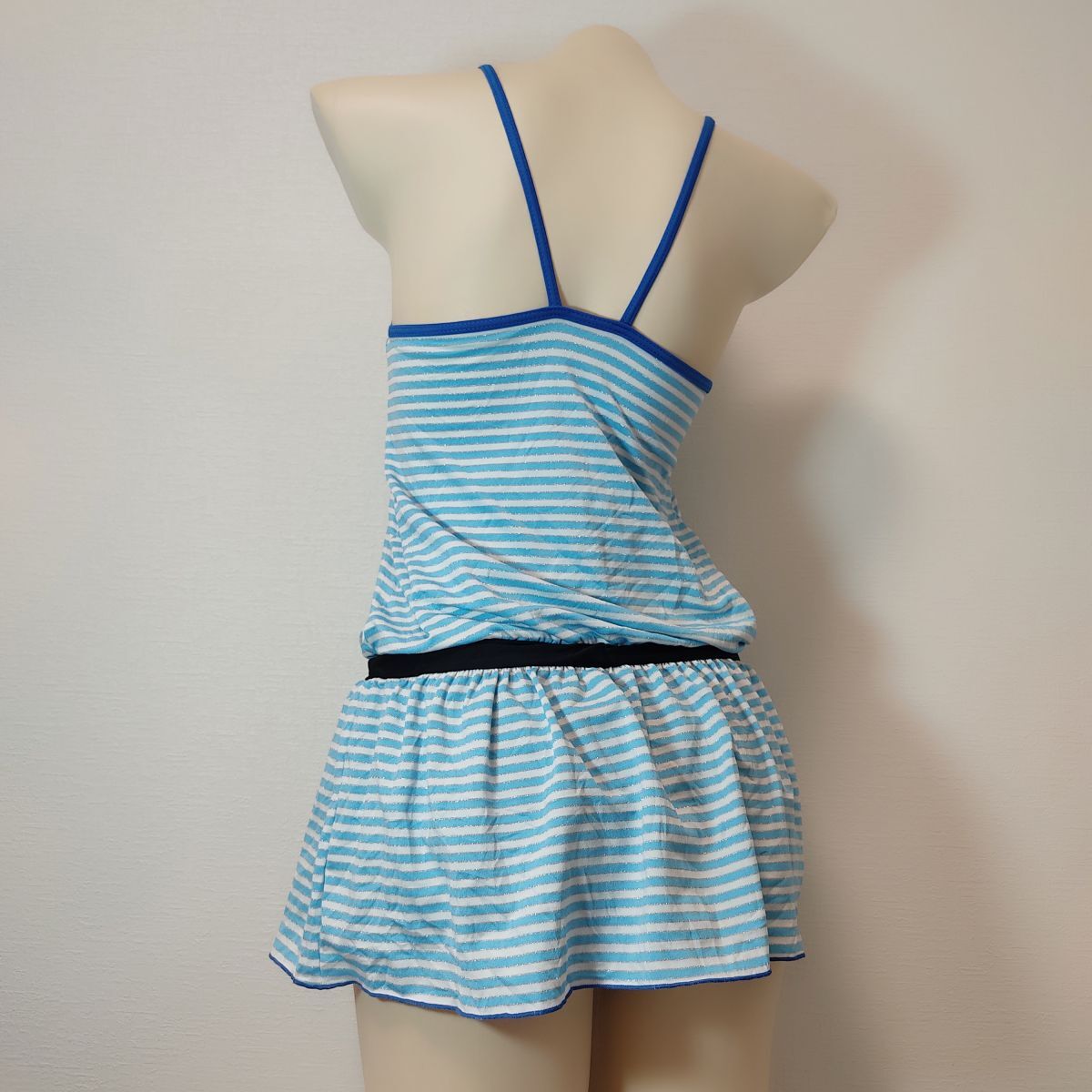 6*クリエイトファッション女子水着(160L程度)★スカート股上ハイレグ光沢水色ホワイト白ラメボーダー柄★伸縮性あり大きいサイズ男性も
