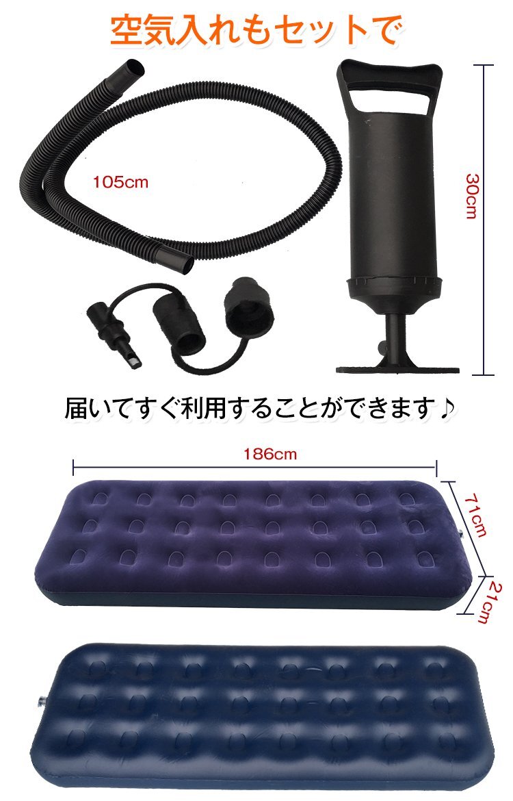 1円 エアーベッド キャンプ 車中泊 簡易ベッド 防災グッズ アウトドア 極厚 ポンプ付き シングルサイズ 一人用 テント レジャー ad219