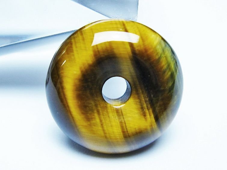 | ■商品名: タイガーアイ※黄虎目石平安扣 ■商品ID: T267-1104 ■商品重量:約 4.4g ■商品サイズ: 高約:20mm 横約:7mm 【タイガーアイ(虎目石)】 タイガーアイは角閃石の一種のクロシドライト(青石綿)に石英が染み込んで酸化し、茶色や黄金色になったものです。 研磨すると光の当たり具合によってキャッツアイ効果、またはシャトヤンシー効果と呼ばれる猫の目のような光の筋が見られ、その輝きと黄金色と褐色の縞模様が虎の眼に見えることからこの名前が付けられました。 ベーシックな金茶色の他にも様々な色合いがあり、温度が高い環境で生成されると深い赤みを帯びたレッドタイガーアイになります。 この他にクロシドライトが酸化せずに生成された灰色のグレータイガーアイは「ウルフズアイ(狼目石)」、濃青色をしたブルータイガーアイは「ホークアイ(鷹目石)」と呼ばれ、タイガーアイとは区別される場合があります。 タイガーアイは視野を広げ正しい判断力と行動力で成功へ導くとされ、ルチルクォーツに匹敵するほどの金運・仕事運アップストーンとして高い知名度と人気を誇っています。 また男性イメージの強い石ではありますが、強力な邪気払い・トラブル回避の効果も持ち合わせていますので女性にはストーカーやセクハラ対策のお守りとしても有用です。 ⇒ タイガーアイをもっと詳しく ◆ワンポイント情報 タイガーアイは塩分によって劣化しやすいので汗が付いた場合は柔らかい布で拭き取るようにし、塩を用いた浄化は行わないように注意しましょう。 |