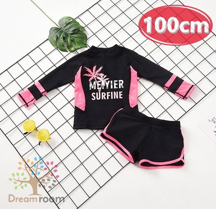 kids 2点セット リゾートヤシの木柄 ピンク ラッシュガード+海水パンツ セットアップ女の子 【100cm】 K-237 スイムウェアー
