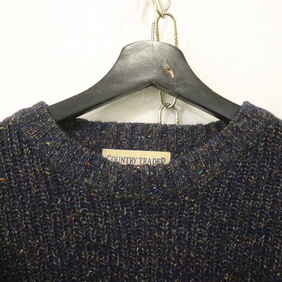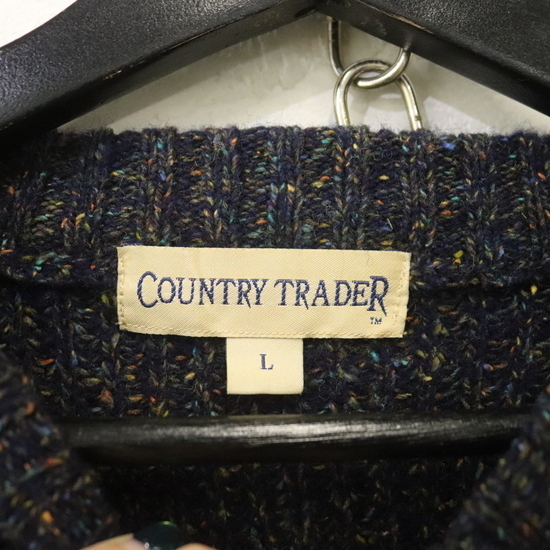 商品名 q207 90sビンテージ COUNTRYTRADER ミックスカラー ウールニット■1990年代製 表記Lサイズ ネイビー 古着 アメカジ トップス 激安 希少