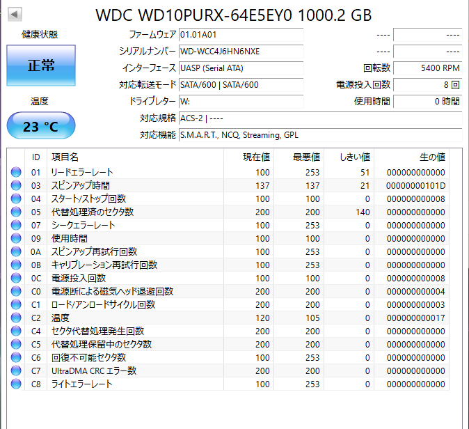 ・HDD診断の為、PC接続しておりますので使用時間&電源投入回数に多少の誤差があります。