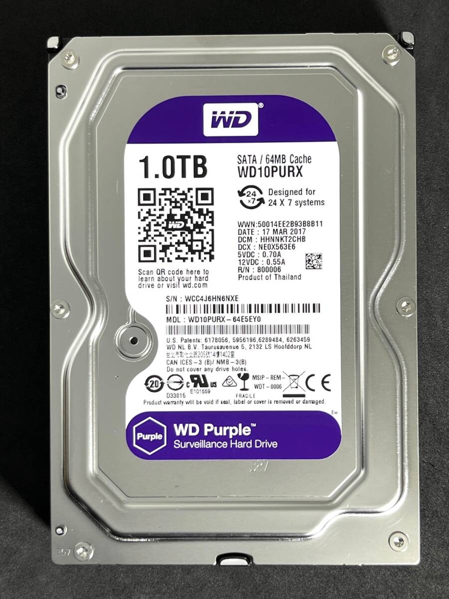 ★ 1TB ★ WD10PURX / Western Digital Purple 【使用時間:0h】2017年製 新品同様 AVコマンド対応 1000GB 3.5インチ内蔵HDD SATA[管5B6N