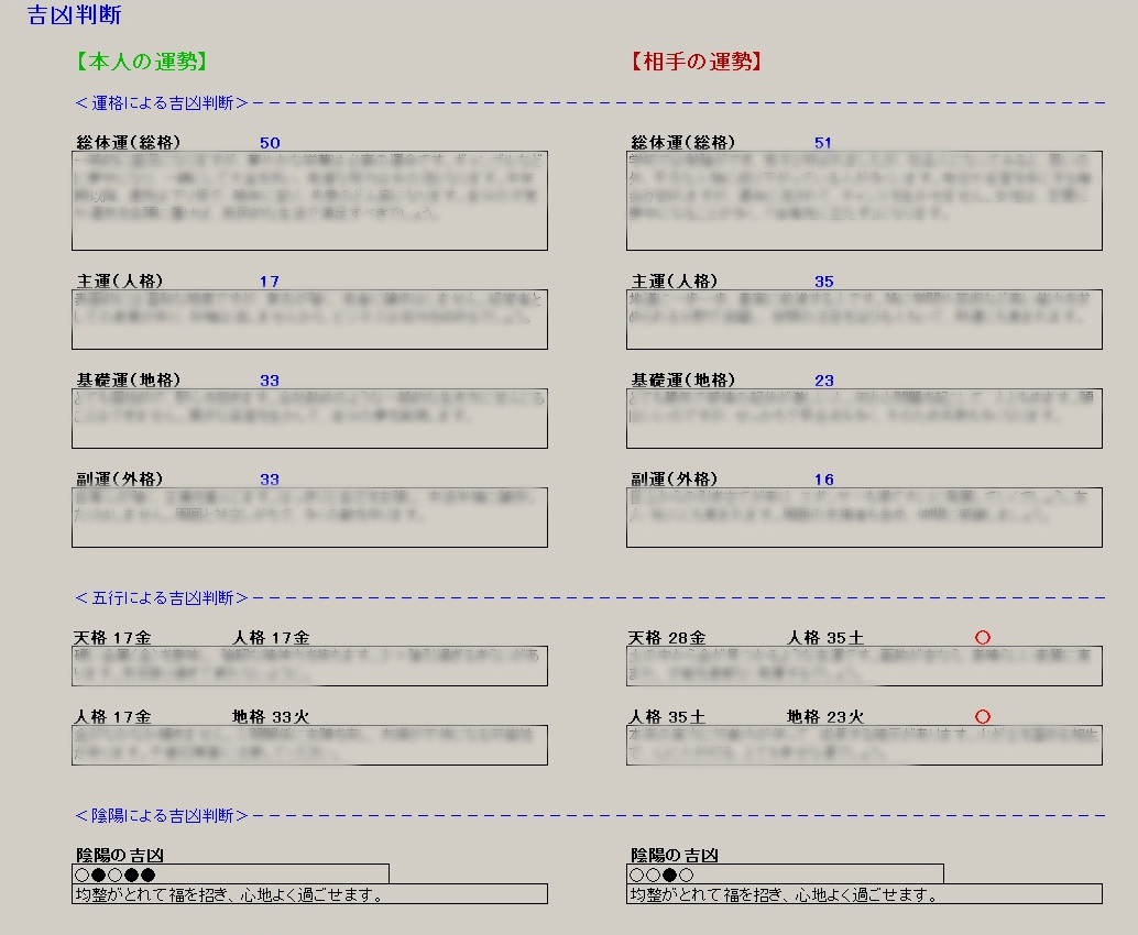 運格による吉凶判断、五行による吉凶判断、陰陽による吉凶判断、
