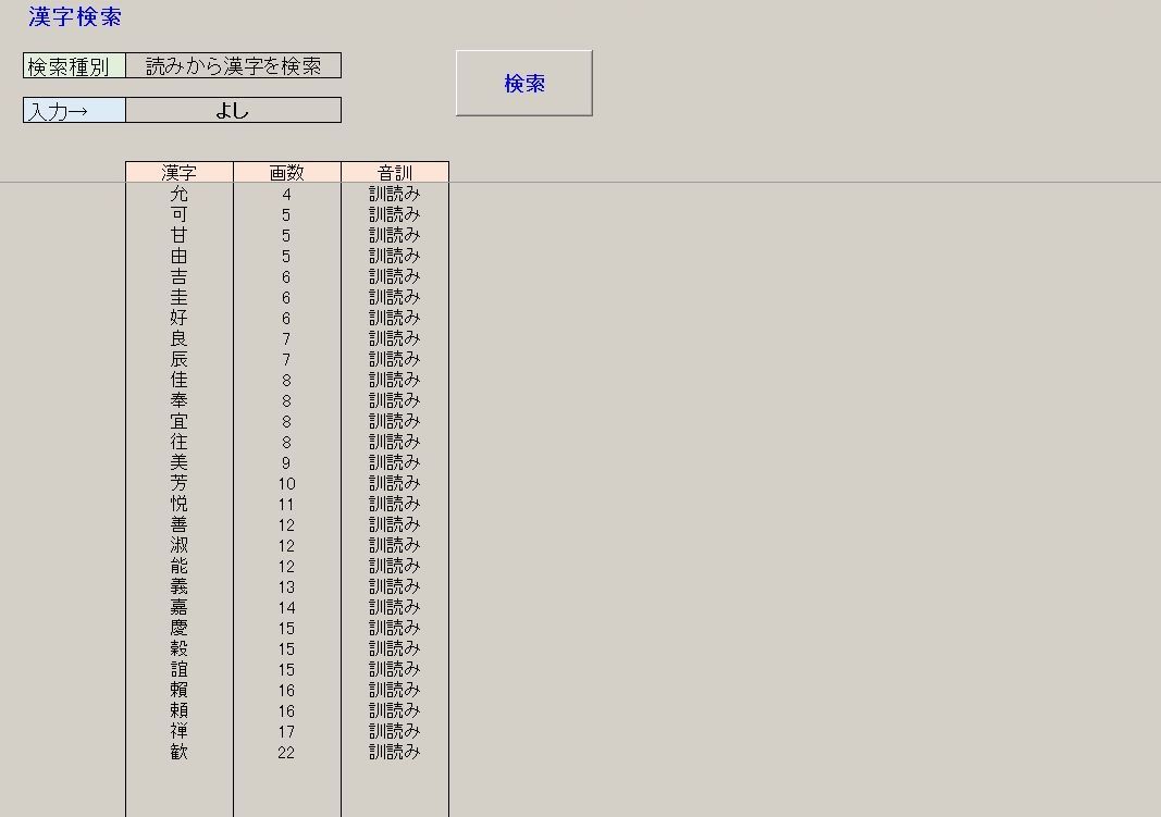 子どもに名前をつけるとき、改名するとき など に 画数や読みから漢字を調べることができます。