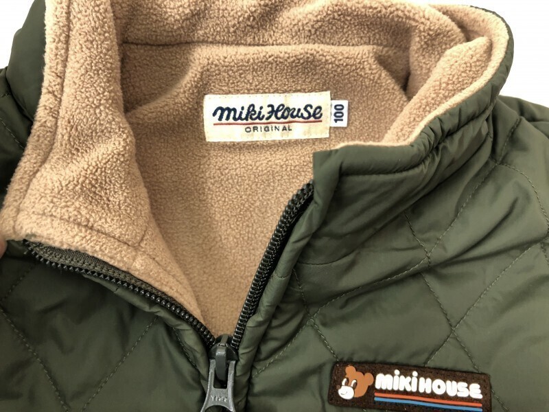 ミキハウス MIKIHOUSE 裏地フリース 中綿入り キルティング ジャケット キッズ 子供服 サイズ100 カーキ です。