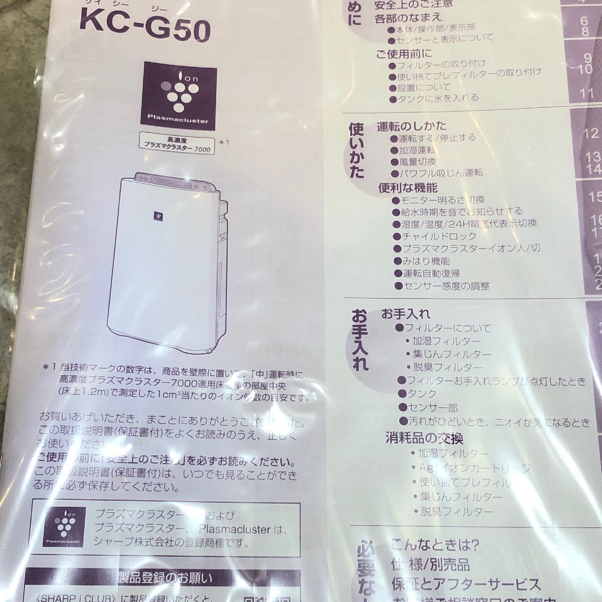 ■■383■未使用■SHARP KC-G50 加湿空気清浄機 シャープ 加湿器 空気清浄機 取扱説明書付き